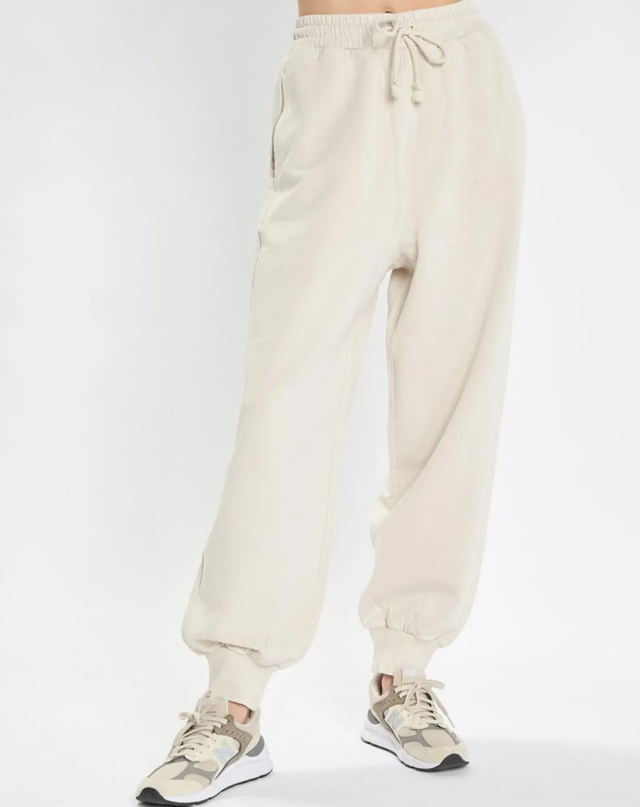 Ce modèle est confectionné en pur coton biologique lavé avec traitement à teinture pigmentaire et dispose d’une taille élastique agréable avec cordon coulissant sous tunnel rond.