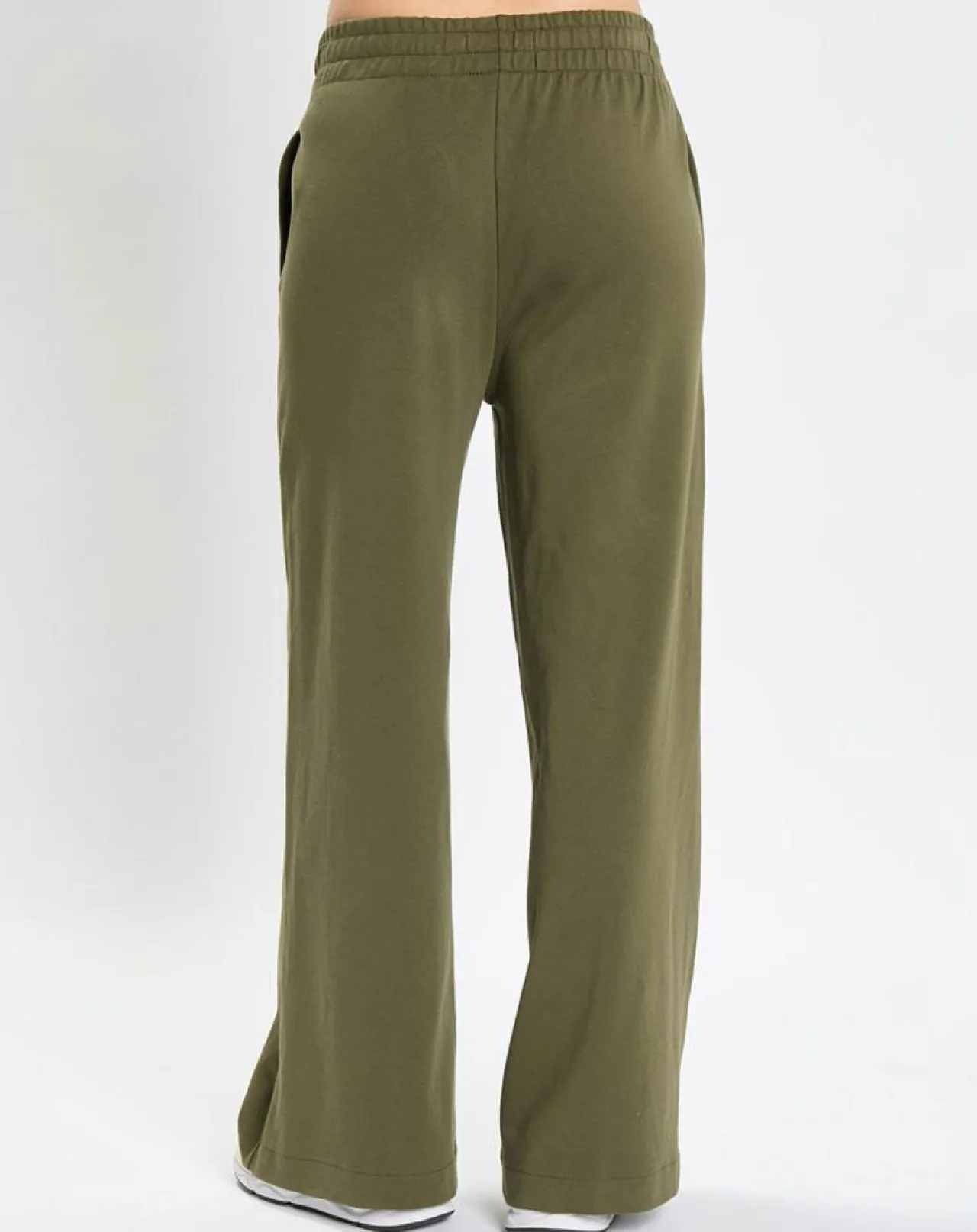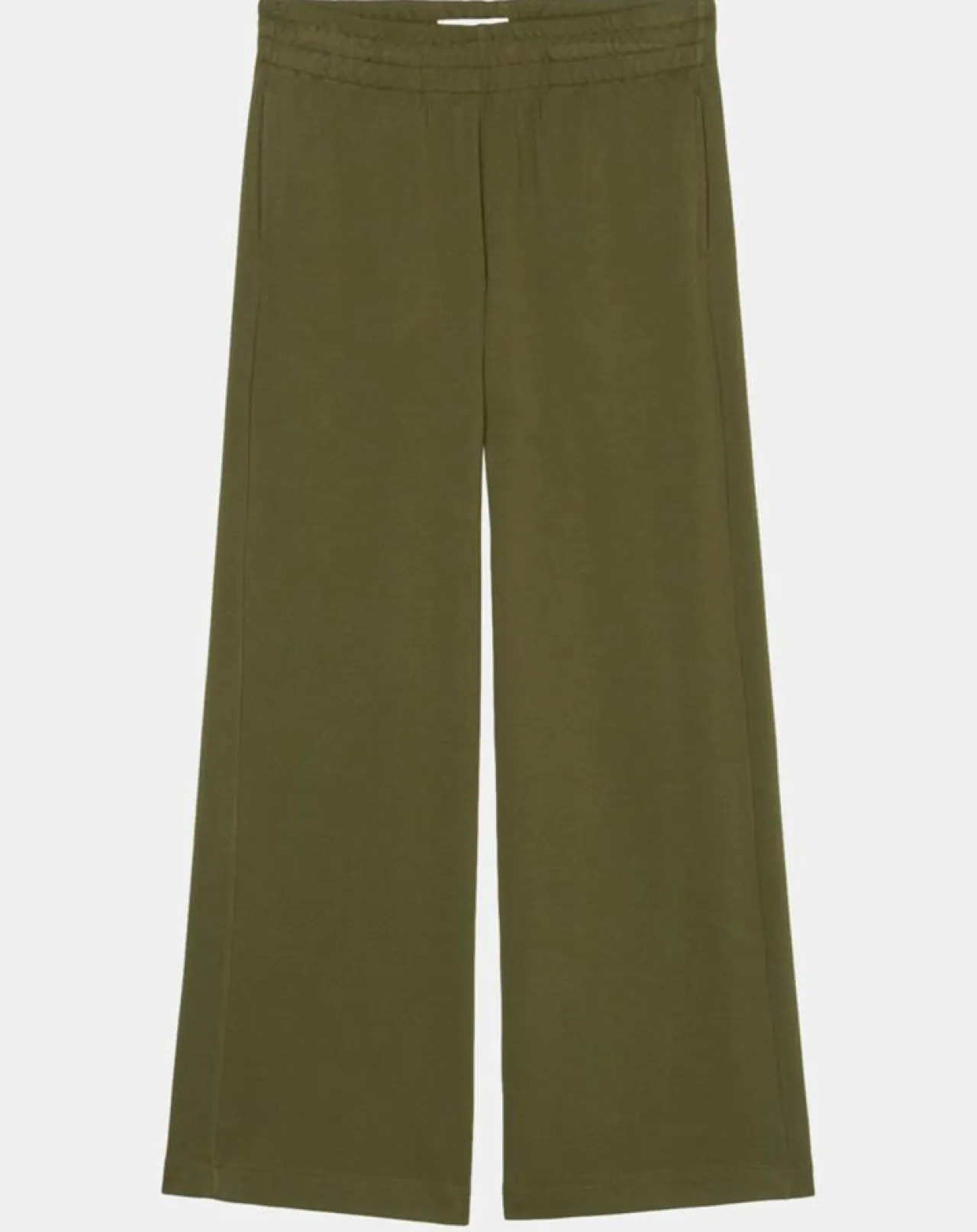 Ce pantalon présente une ceinture élastique confortable, des coutures latérales décalées vers l’avant et deux poches fendues pratiques, prises dans les coutures sur les côtés.