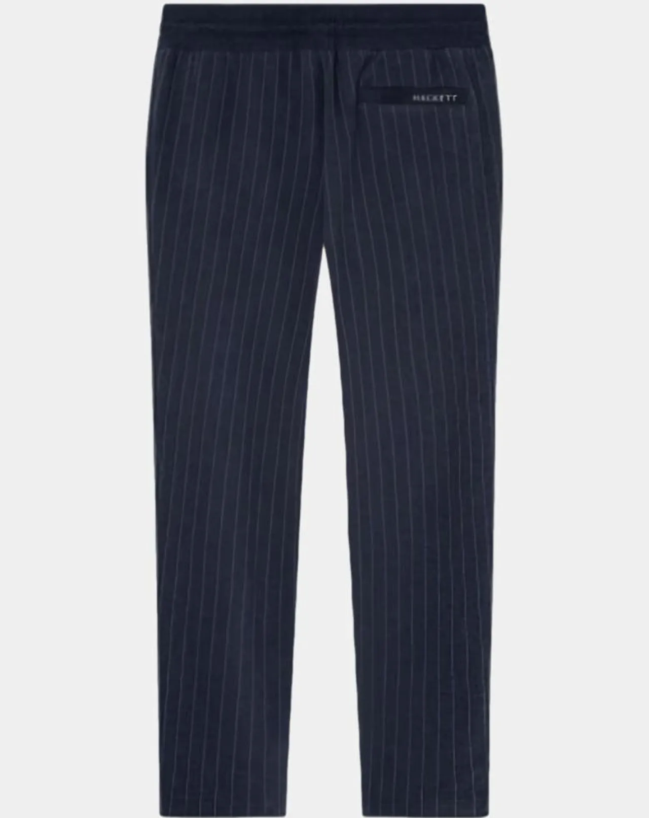 Ce jogging droit Hackett London en coton à fines rayures, se pare de 2 poches latérales devant, d’une poche arrière et d’une taille élastique avec lien de serrage.