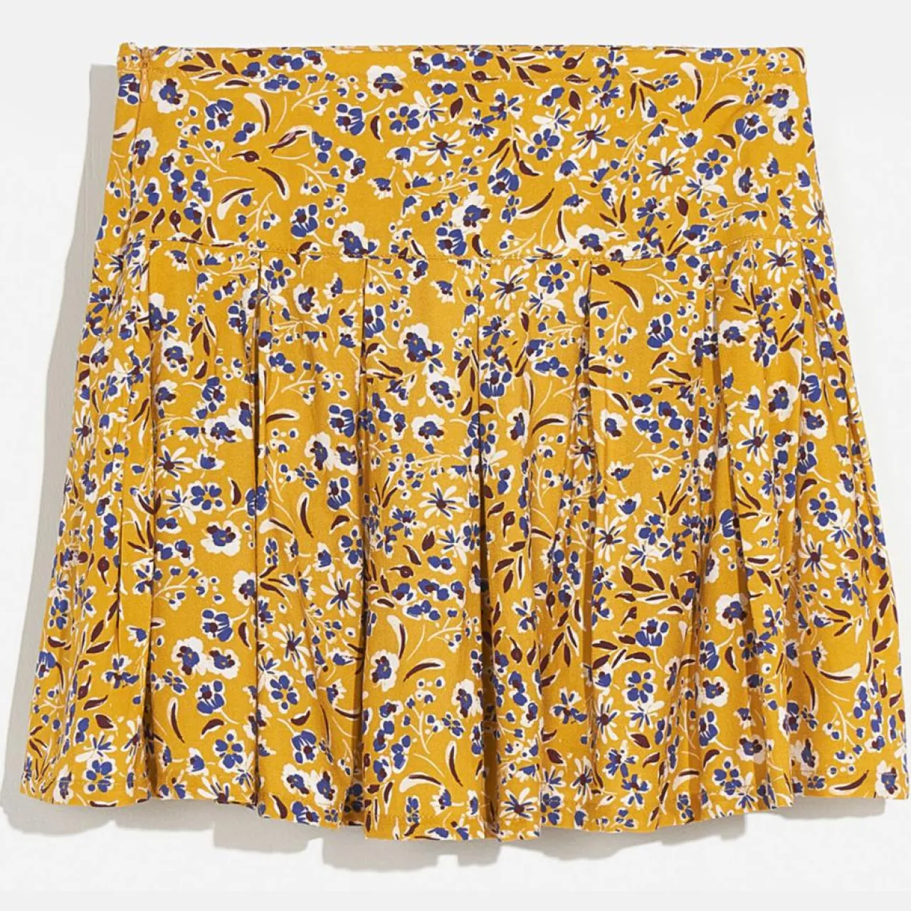 Confectionnée en pure viscose EcoVero, elle assume un style plein de poésie avec un imprimé liberty à petites fleurs, une longueur mini, une large ceinture et un esprit espiègle ! La jupe parfaite à associer à un pull col roulé, des collants en polaire et une paire de Dr. Martens pour un look d’automne audacieux.