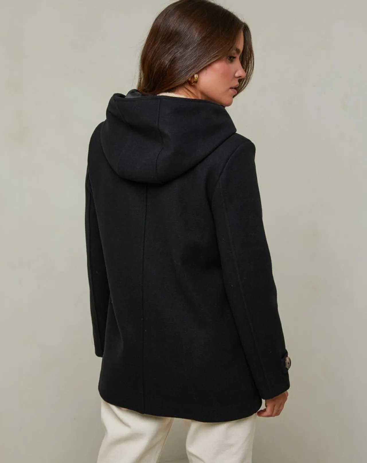 Manteau court à capuche, fermeture à tache avec deux poches sur les côtés