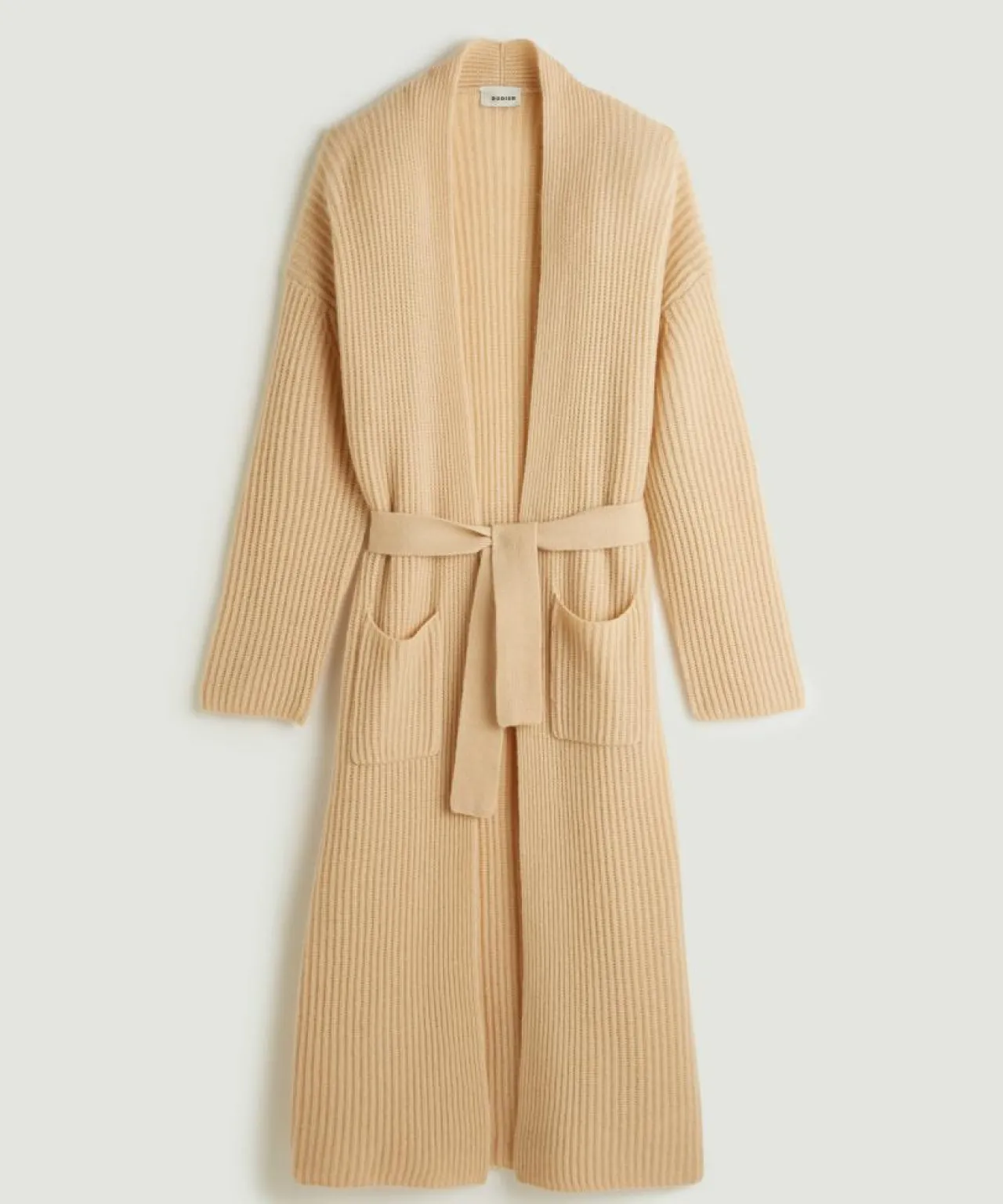 Manteau Lily-Rose long 100% Cachemire ceinture beige chiné