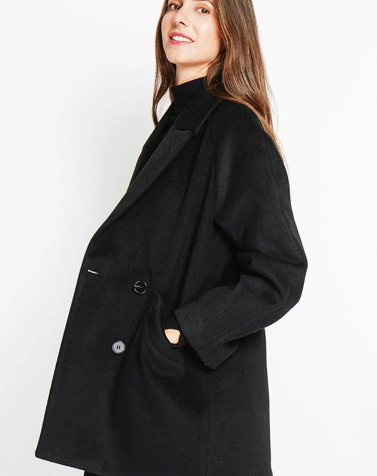 Manteau coupe oversize double boutonnage poches à manches longues doublé imprimier