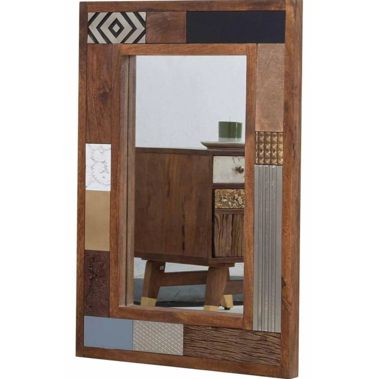 Miroir peau de vache bois sculpté manguier terranova