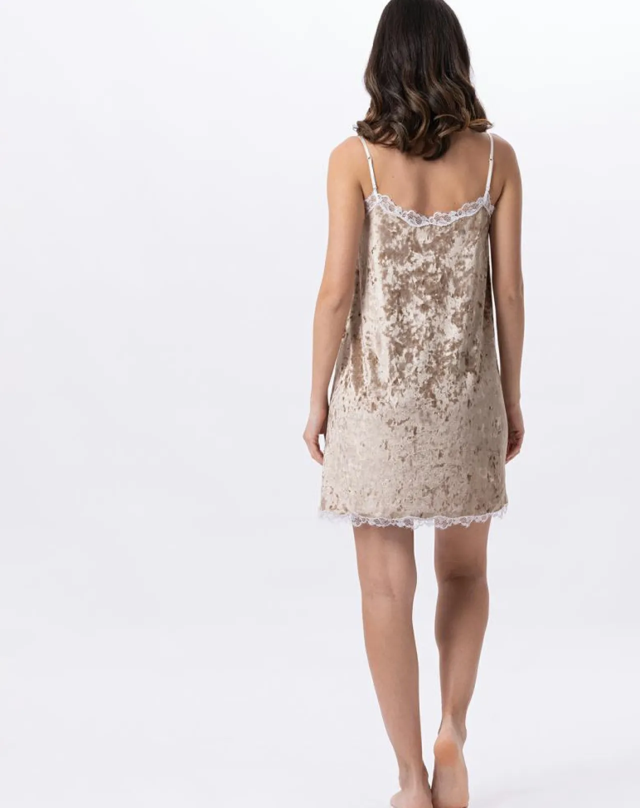 Pour tomber dans les bras de Morphée, lovez-vous dans PLATINE 803 et appréciez toute la douceur de la panne de velours sur votre peau. Au saut du lit, associez votre nuisette à un peignoir, une robe de chambre ou une veste ESSENTIEL.