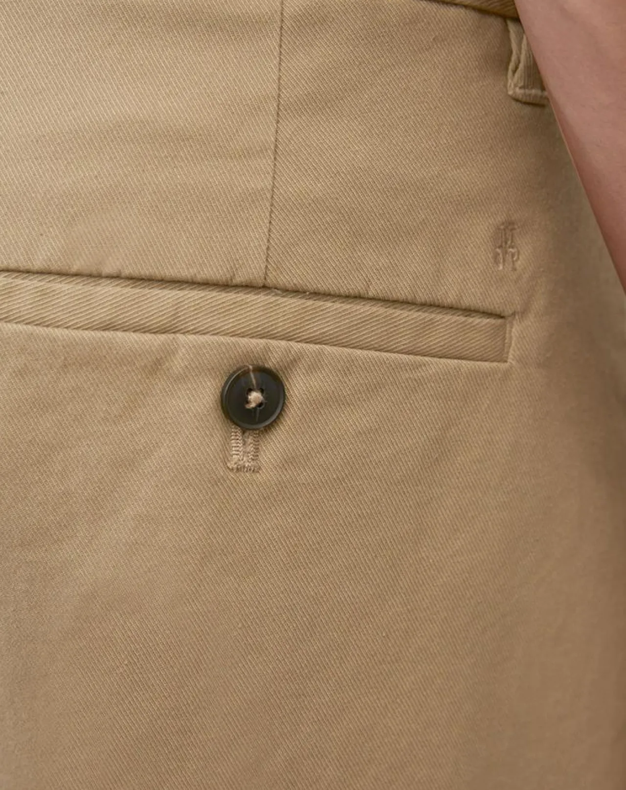 Désormais doté de pinces à la taille : le pantalon moderne – modèle BELSBO pleats – dans un mélange de coton biologique extensible de qualité supérieure.