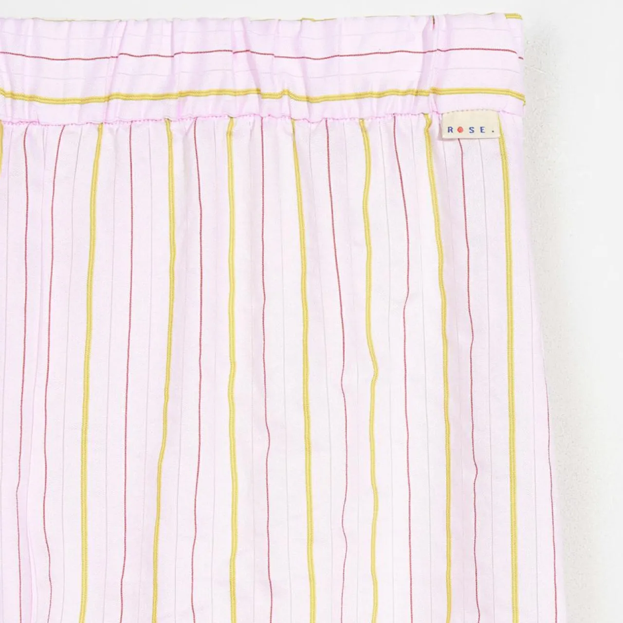 Confectionné en viscose mélangée avec des rayures estivales, le pantalon PAIGE présente un style épuré à jambes larges avec une taille élastique