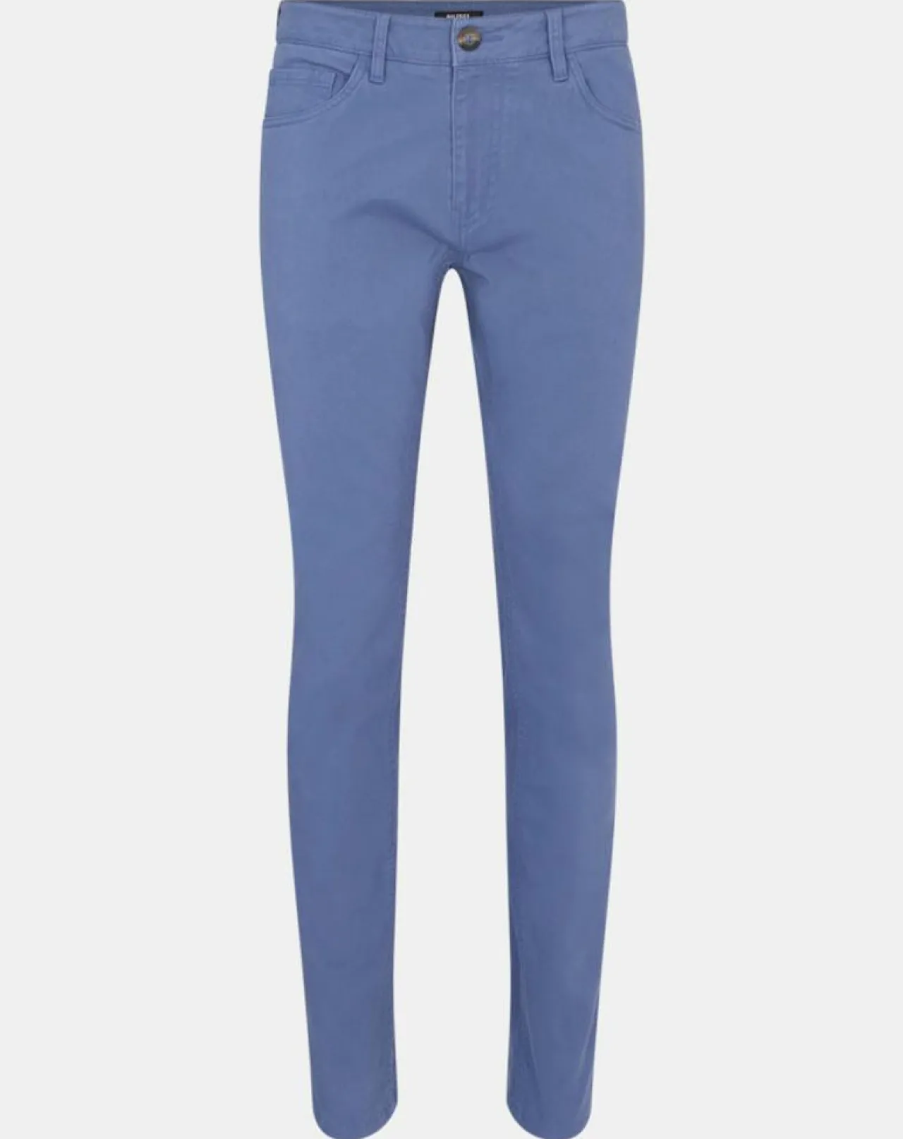 Ce jean ajusté Galeries Lafayette en coton stretch présente des passants pour le ceinture, 2 poches cavalières et une poche ticket ainsi que 2 poches plaquées au dos.