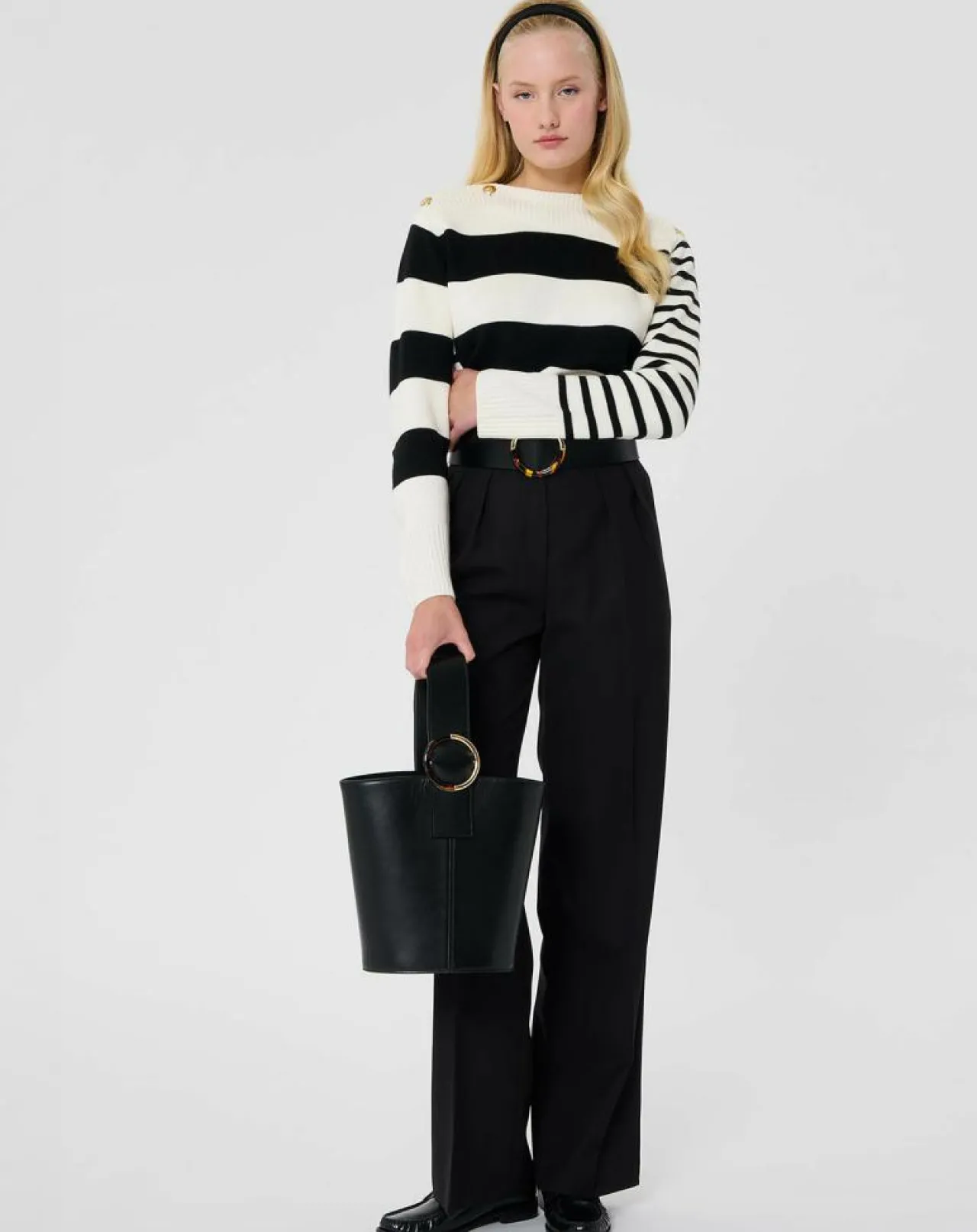 Sa coupe palazzo est ajustée à la taille