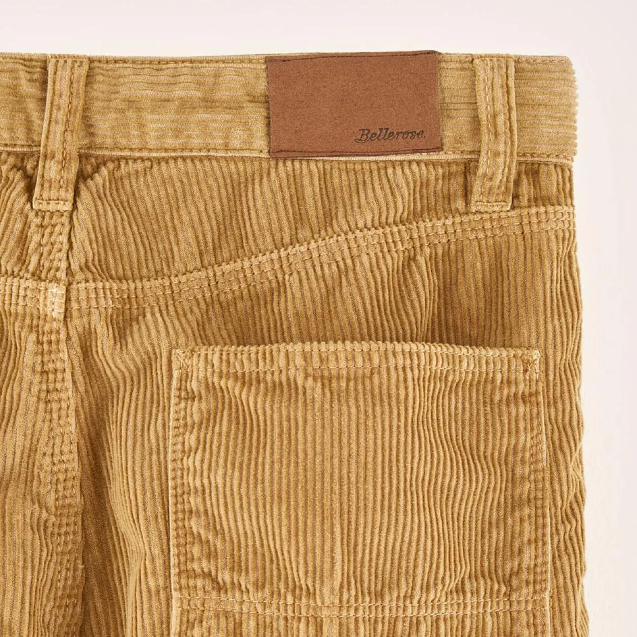 Pantalon régular à jambe droite en velours côtelé couleur marron clair