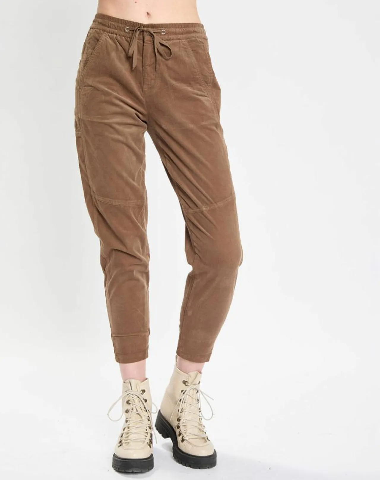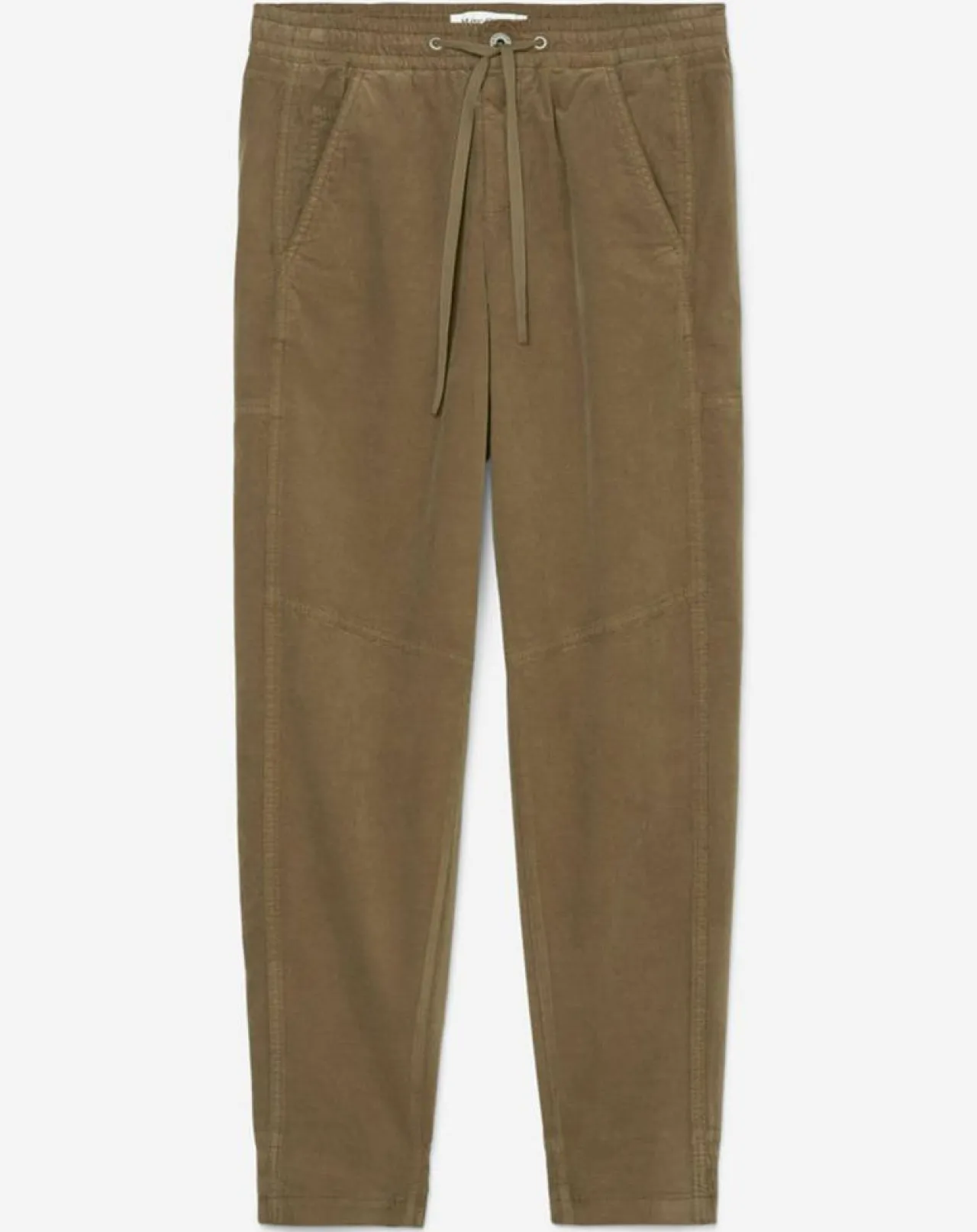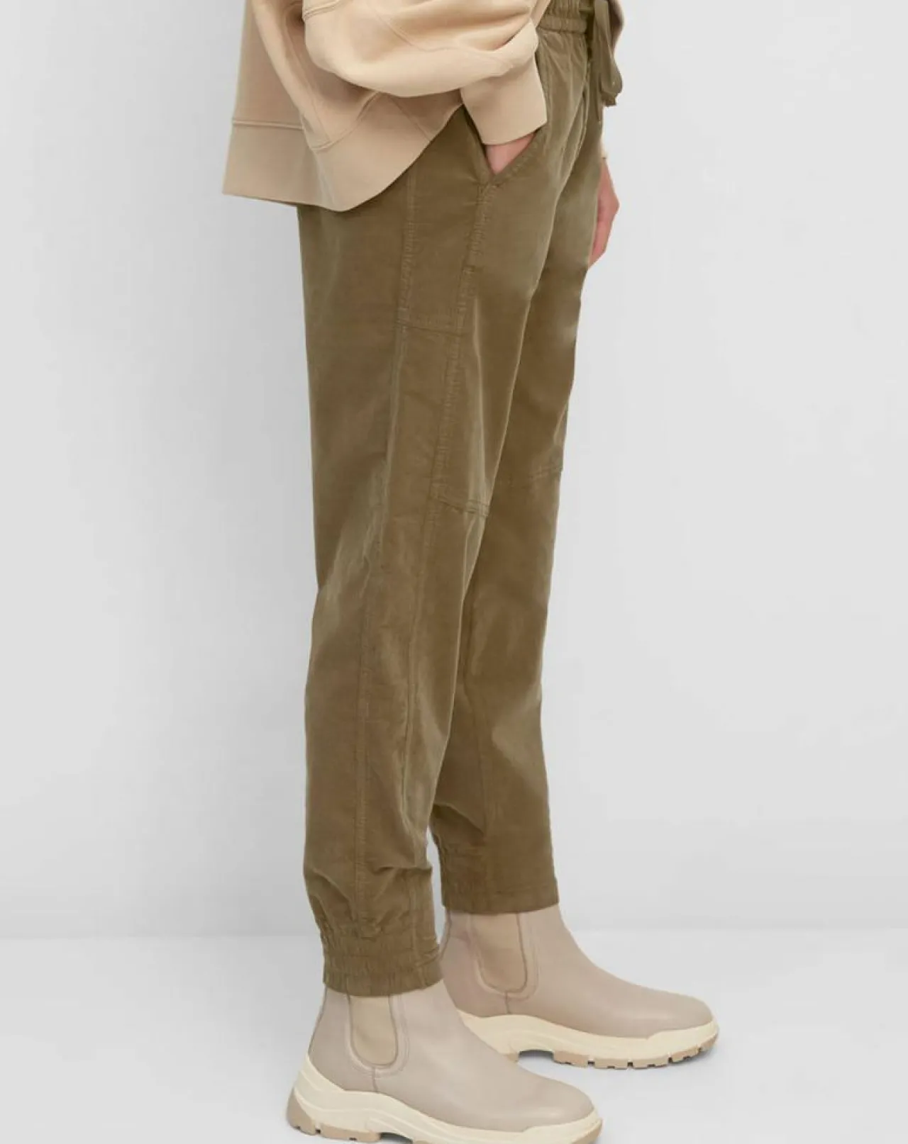 Sobre, sportif et plutôt décontracté – ce pantalon en fin velours confortable est doté d’une ceinture élastique, d’un cordon coulissant sous tunnel et d’une bordure partiellement élastiquée à la base.