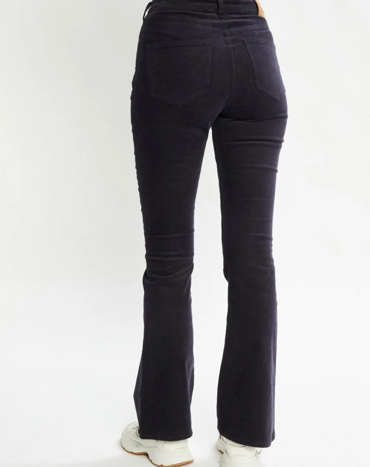 Ce pantalon évasé Scotch & Soda composé de coton velours milleraies stretch, se pare de 3 poches sur l’avant, de 2 poches sur l’arrière, d’une fermeture zippée rehaussée d’un bouton et d’une taille haute à passants
