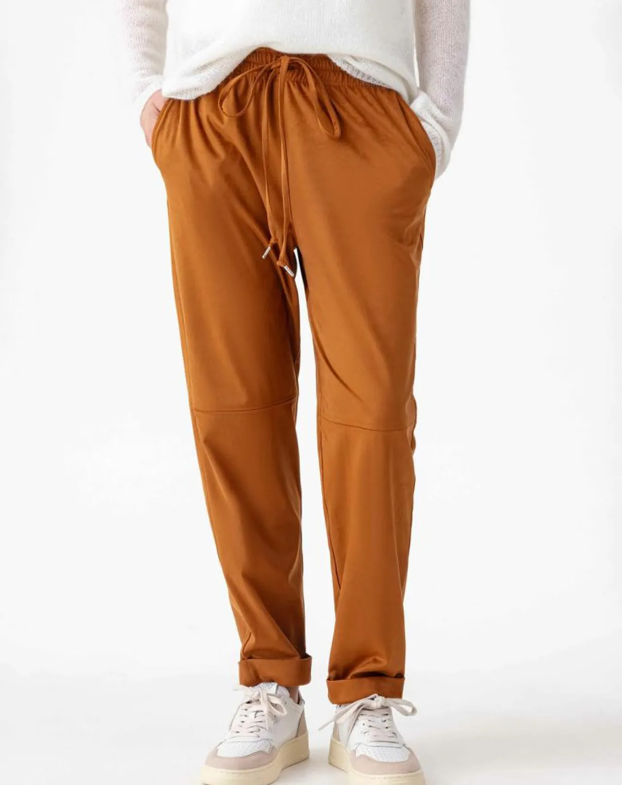 Le pantalon JULES en suédine camel est le summum du confort et de la modernité