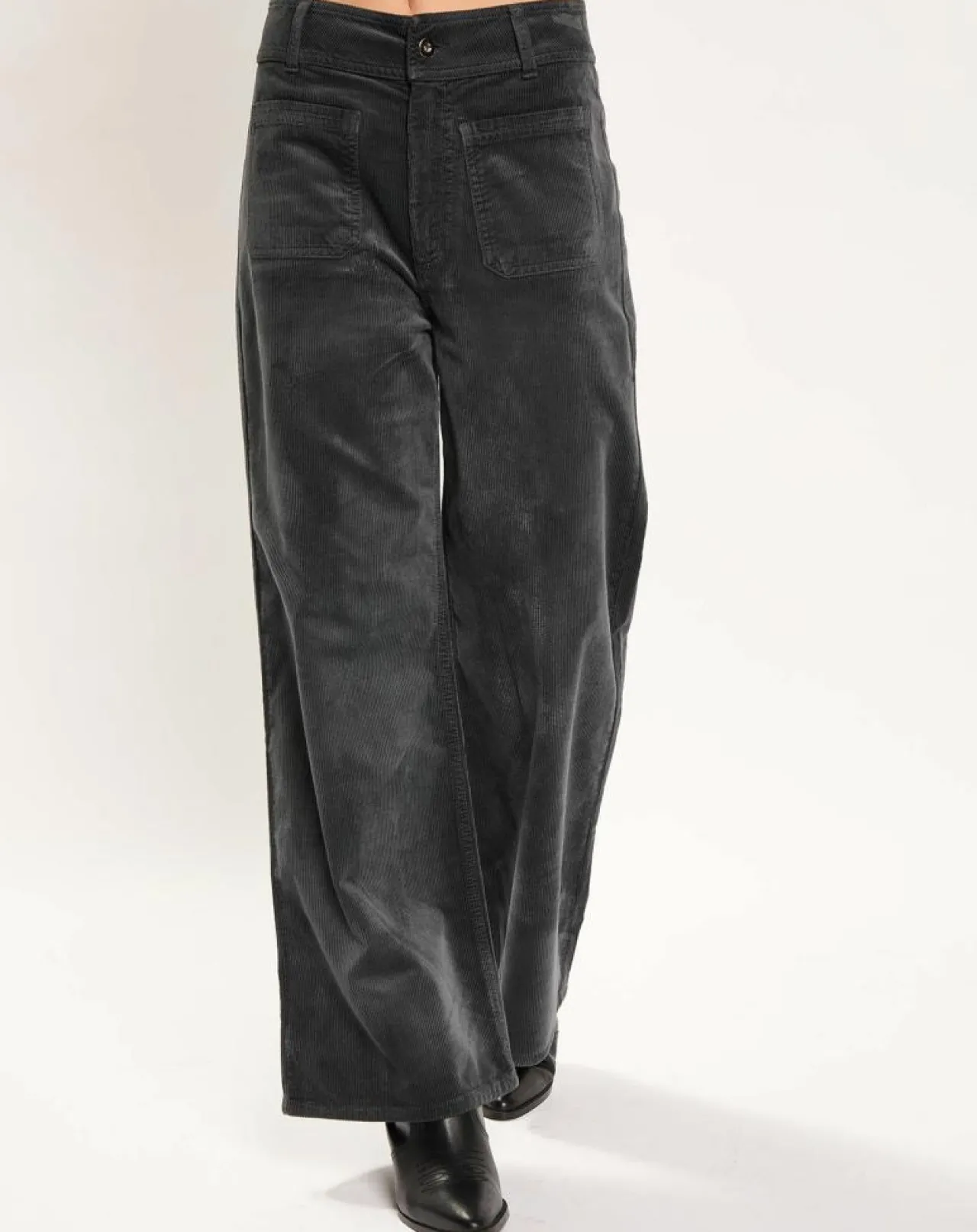 Pantalon taille haute jupe-culotte avec poches plaquées devant, zip et bouton métal