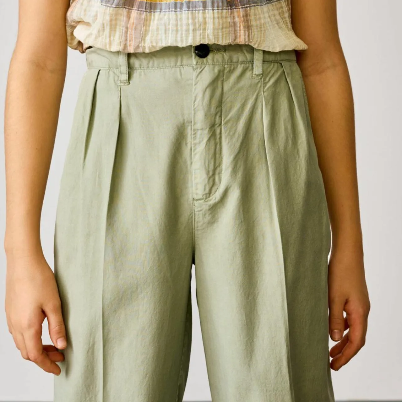 Confectionné dans un mélange écologique de Lyocell et de coton, il oscille entre décontraction et look chic avec quelques pinces à la taille, des ourlets larges, et une taille élastiquée réglable pour un ajustement optimal.