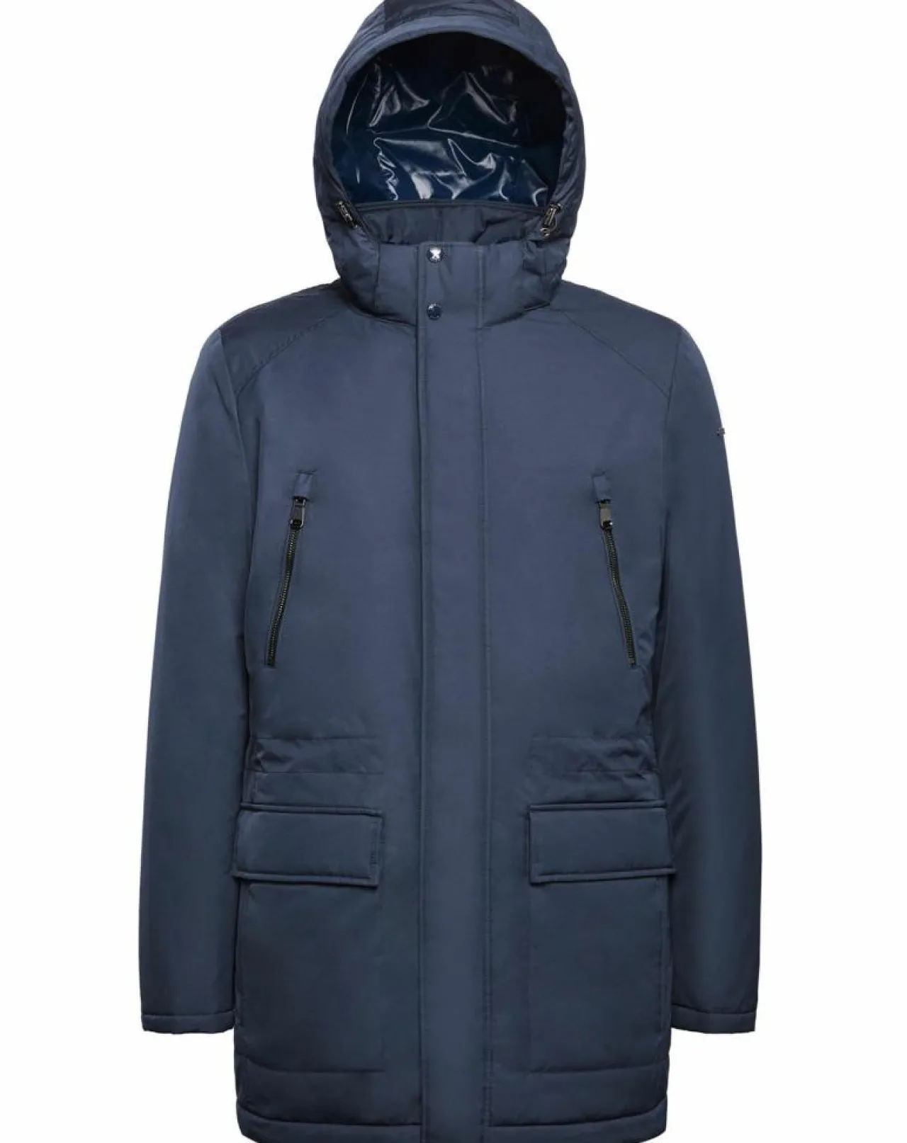 Dans cette version bleu nuit, le modèle Vincit est un manteau qui allie fonctionnalité et style formel, pour compléter au mieux les tenues de la ville et du bureau