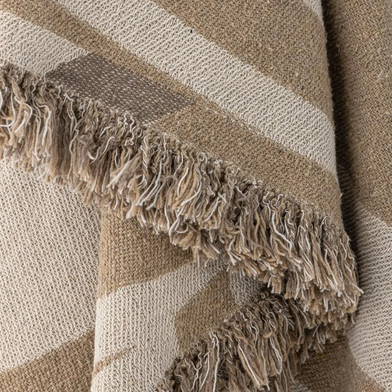 Le plaid Orinoco de Bloomingville est tissé à partir de coton recyclé avec un beau motif dans des couleurs beige et brun. Le tapis est réversible, car il a des motifs de chaque côté.