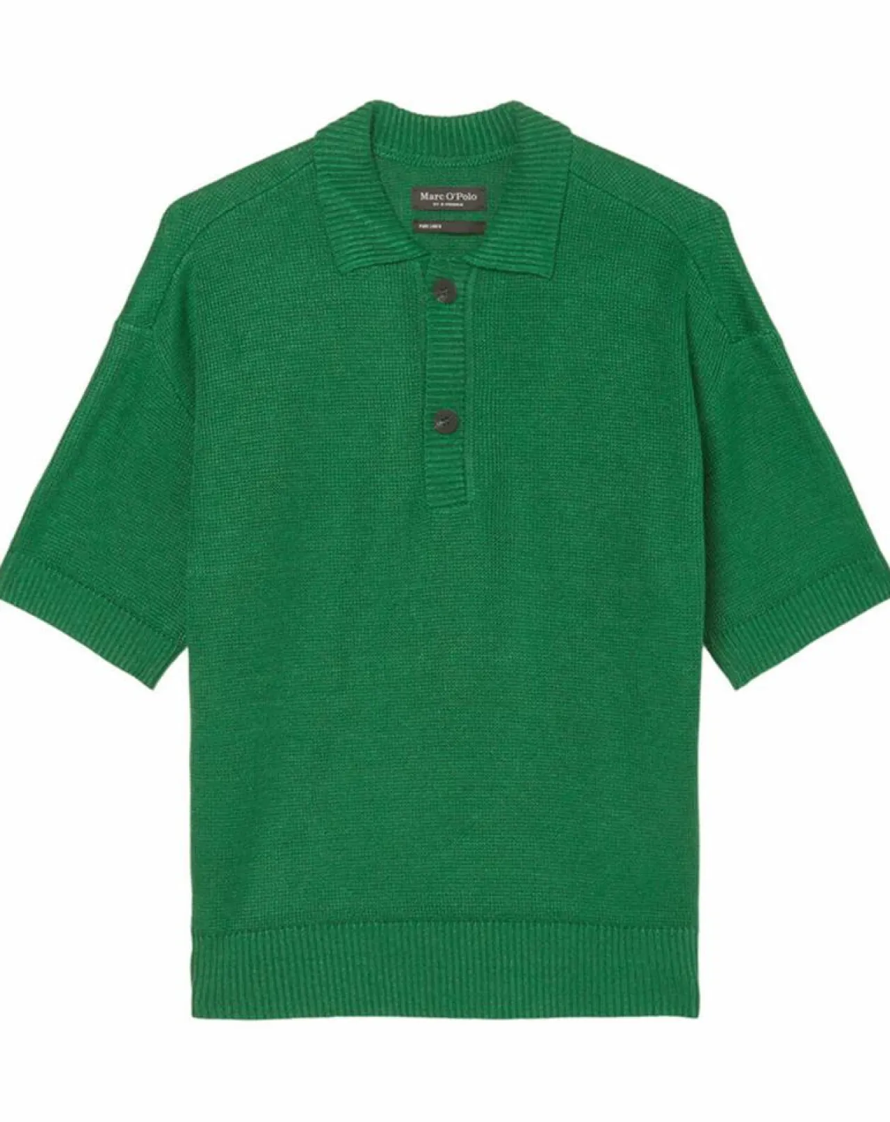 Tricoté, doux et haut de gamme : le pull-over à manches courtes de style polo sportif.