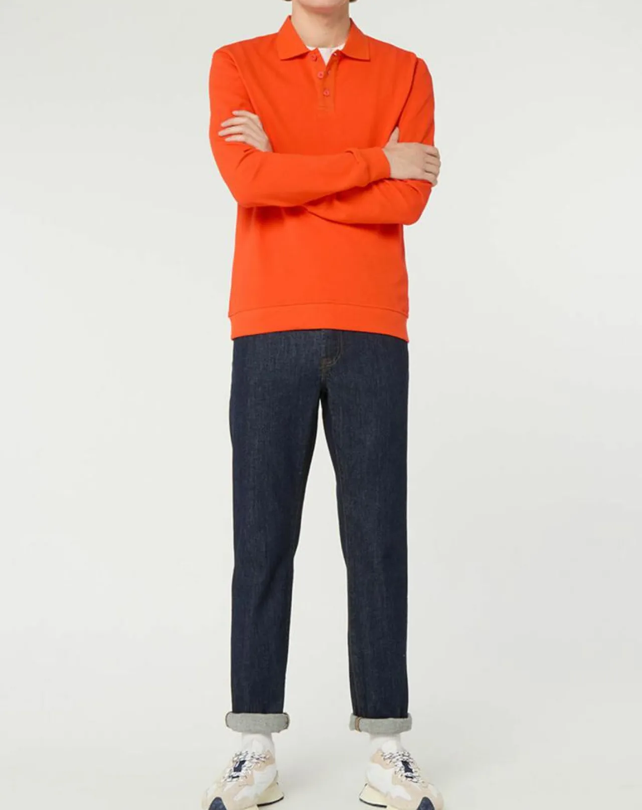 Il est muni d’un col boutonné, de manches longues et de finitions côtelées.