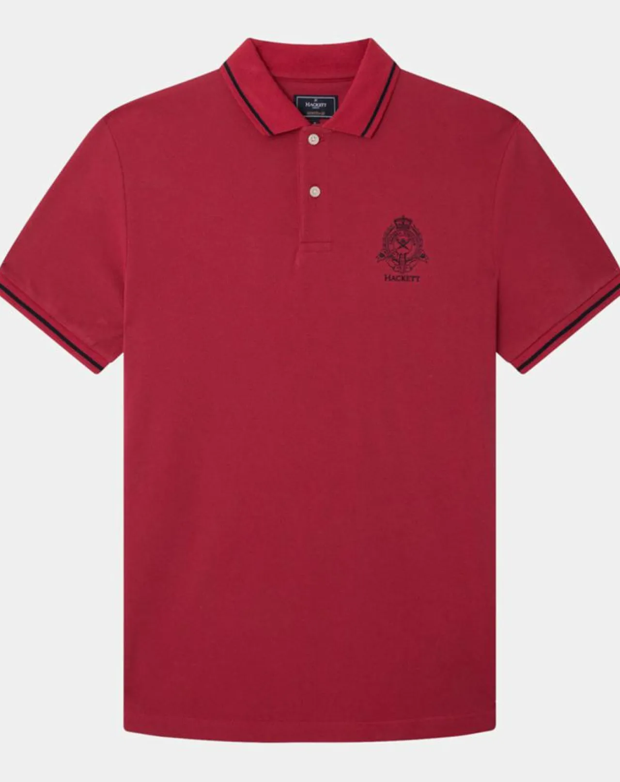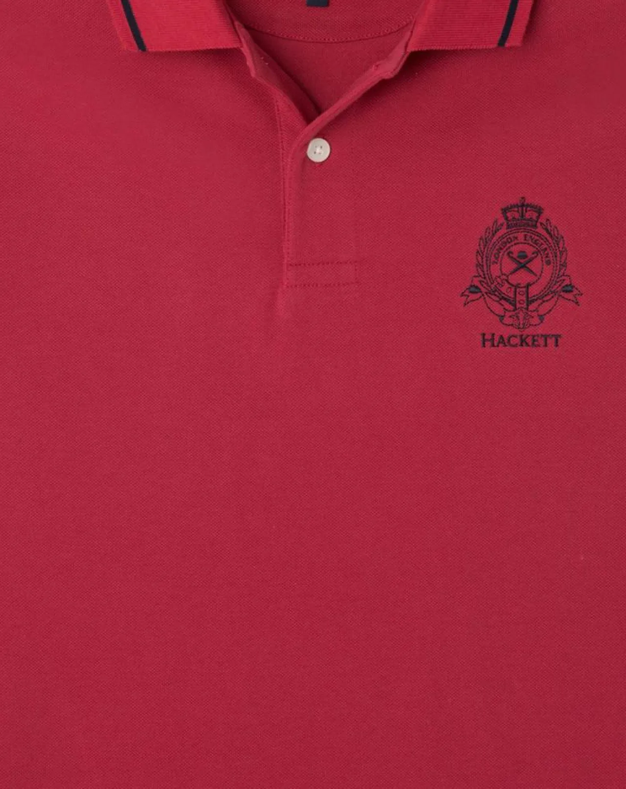 Ce polo droit Hackett London en coton piqué est muni d’un col classique suivi d’une patte à 2 boutons, de manches courtes, d’une broderie blason et signature sur le côté gauche de la poitrine ainsi que de finitions côtelées à liserés contrastants