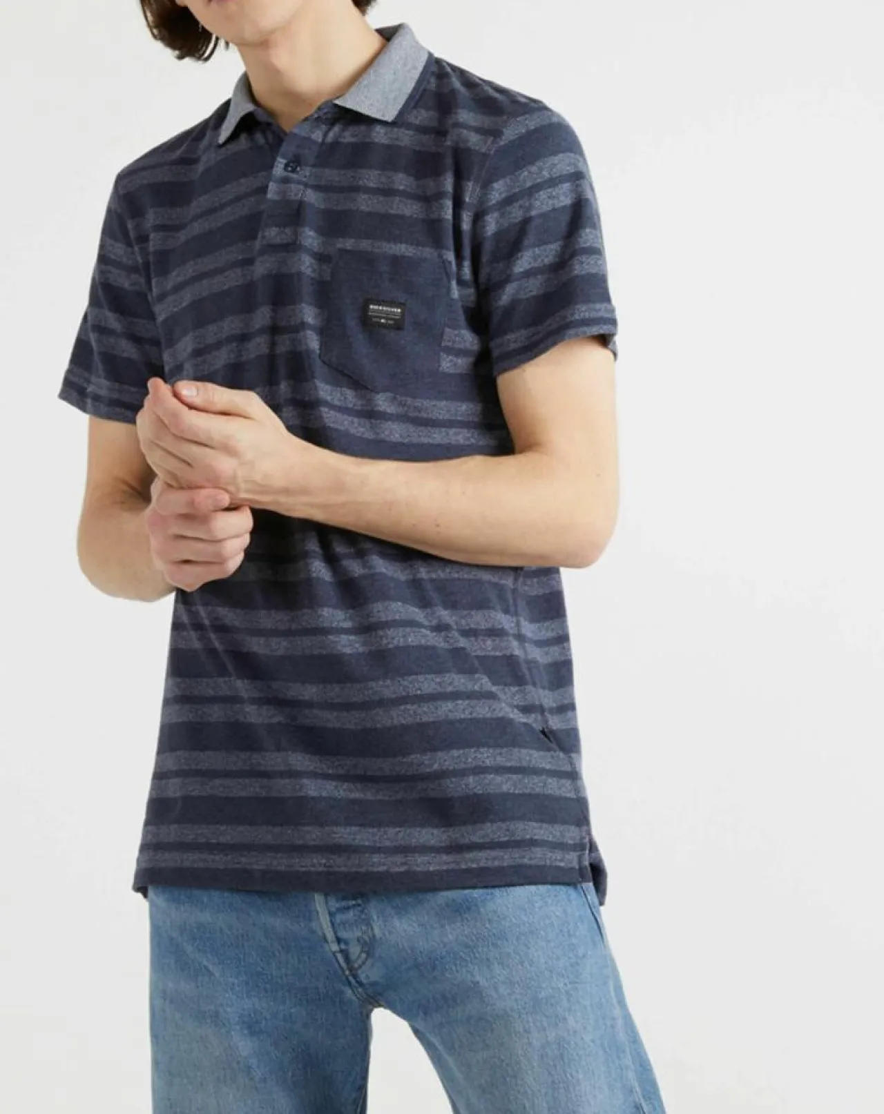 Ce polo droit Quiksilver composé de coton et à rayures, présente un col classique suivi d’une patte boutonnée, des manches courtes et une poche poitrine siglée