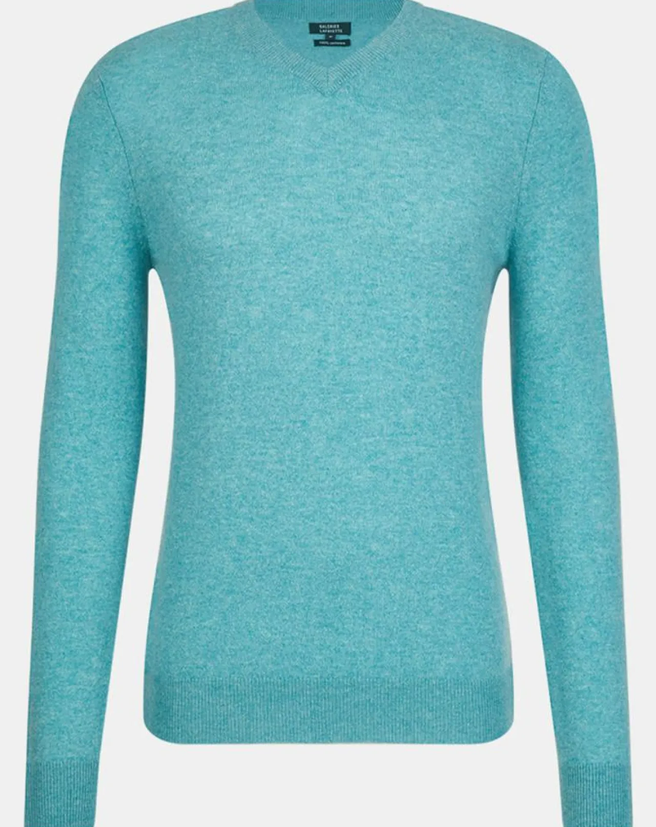 Ce pull uni en cachemire Galeries Lafayette, est doté de manches longues, d’un col V et de finitions côtelées.