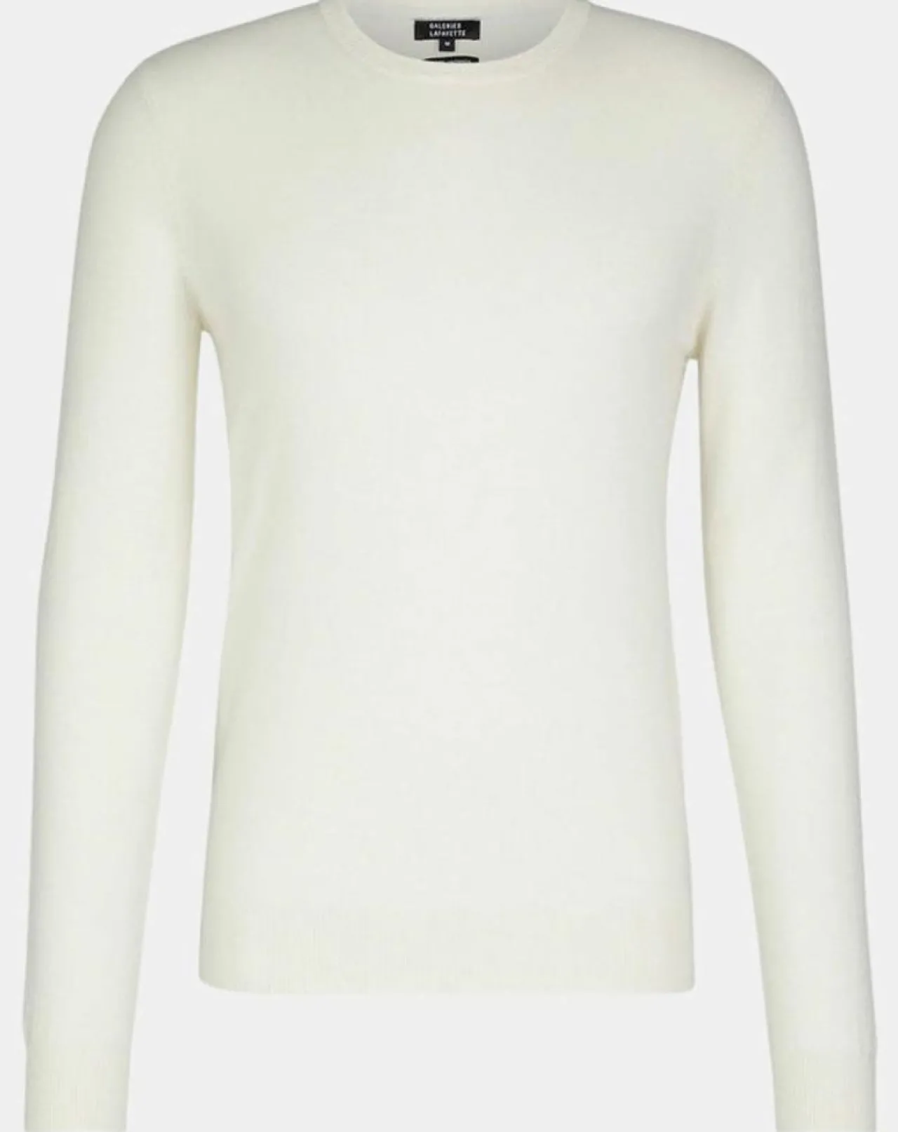 Ce pull droit Galeries Lafayette en cachemire est muni d’un col rond, de manches longues et de finitions côtelées.