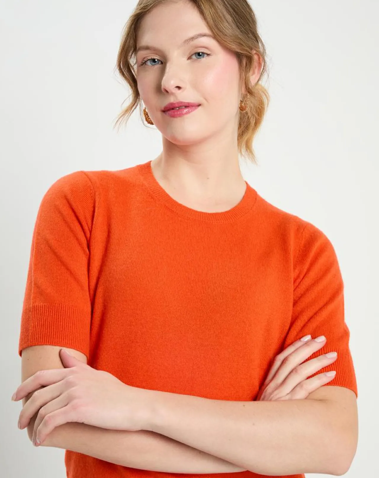 Ce pull droit Galeries Lafayette en cachemire est muni de manches courtes, d’un col rond et de finitions côtelées.