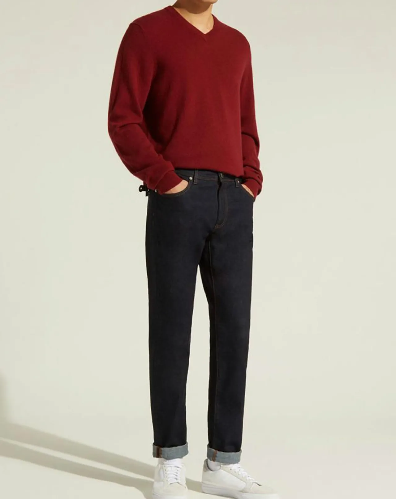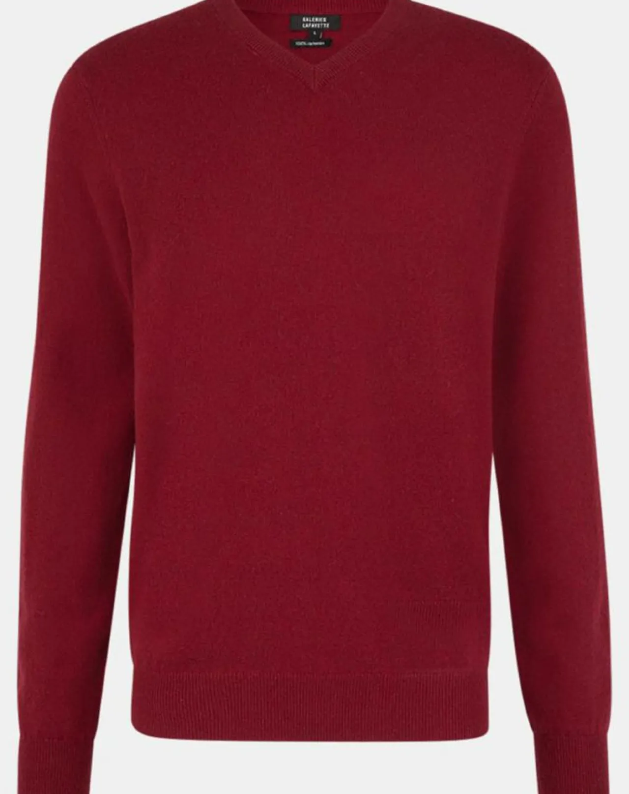 Ce pull droit Galeries Lafayette en cachemire est muni d’un col V et de finitions côtelées.