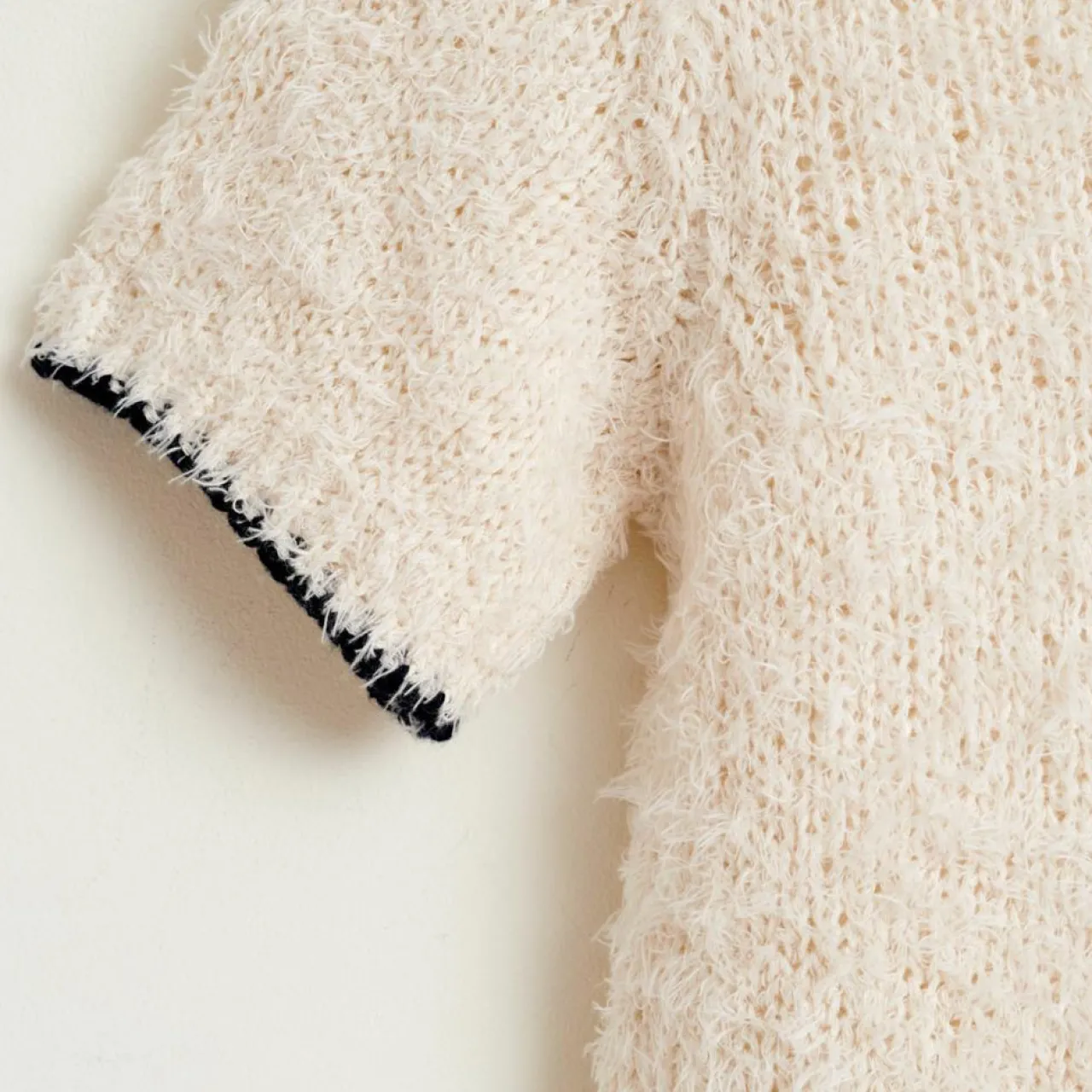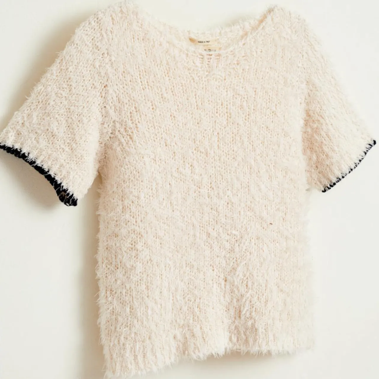 Rangez les gros pulls d’hiver et sortez les pulls manches courtes du placard ! Notre NOMED est un pull à manches courtes au poil ! Coupe classique, col échancré et une texture un peu »fluffy » qui sort de l’ordinaire