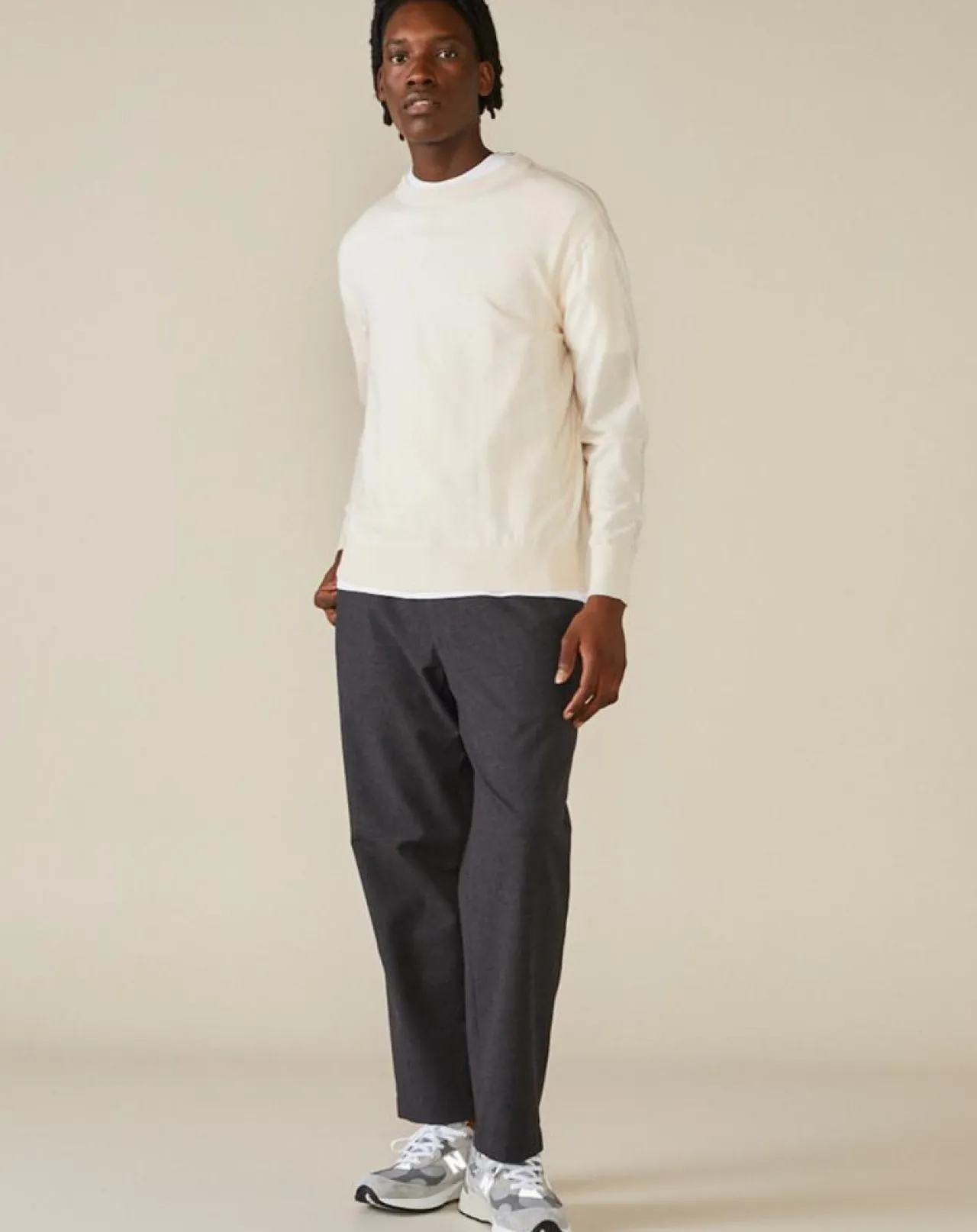 Une coupe décontractée sans complications, un col rond et des finitions côtelées