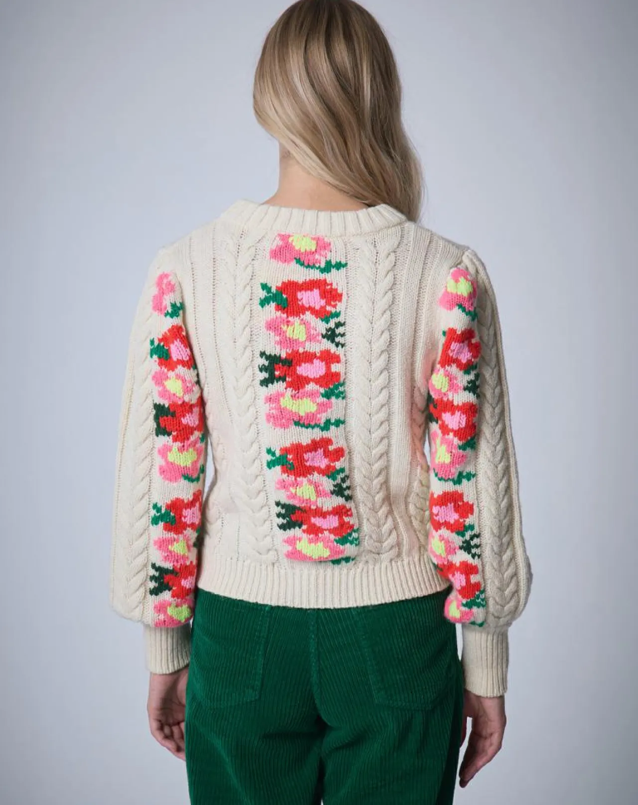 Bord côte côtelé à l’encolure, sur le bas des manches et du pull.