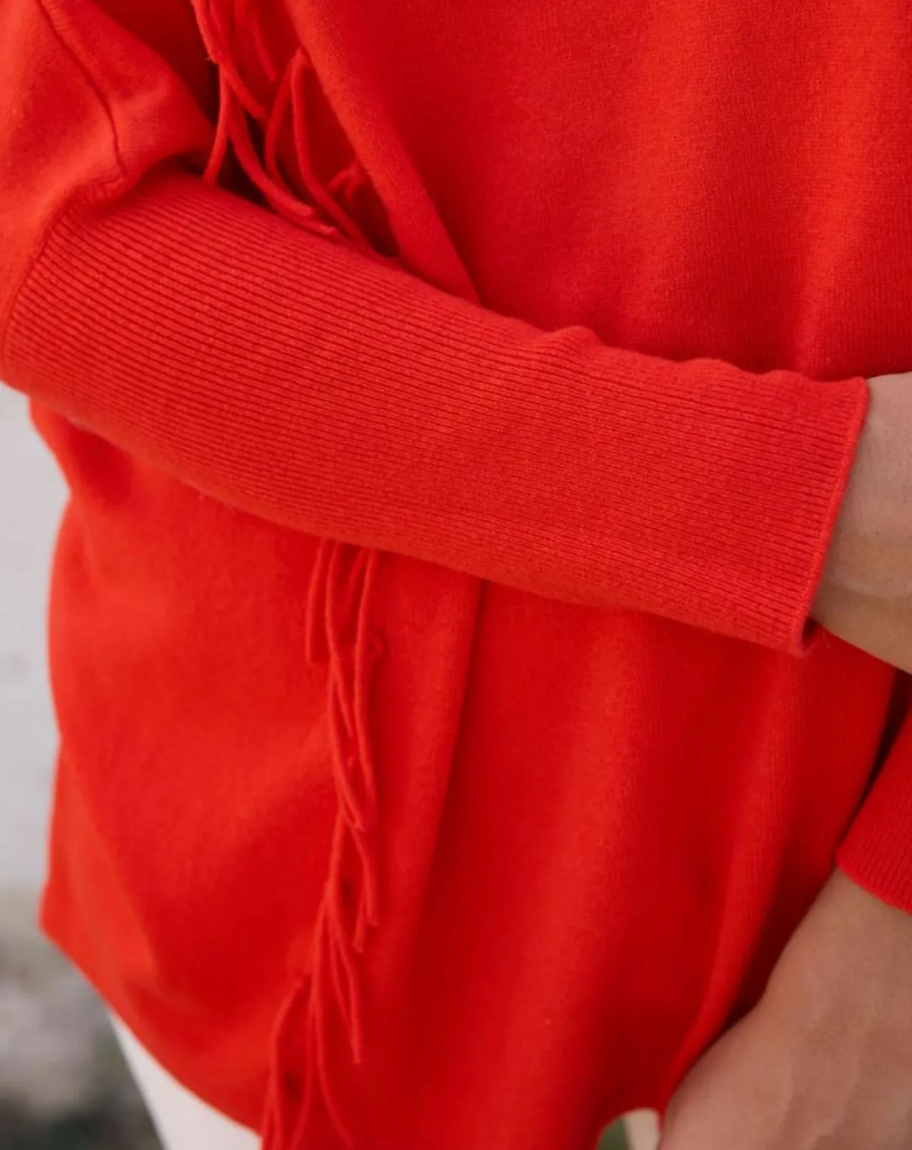 Pull frangé en 100% laine au col V et manches longues