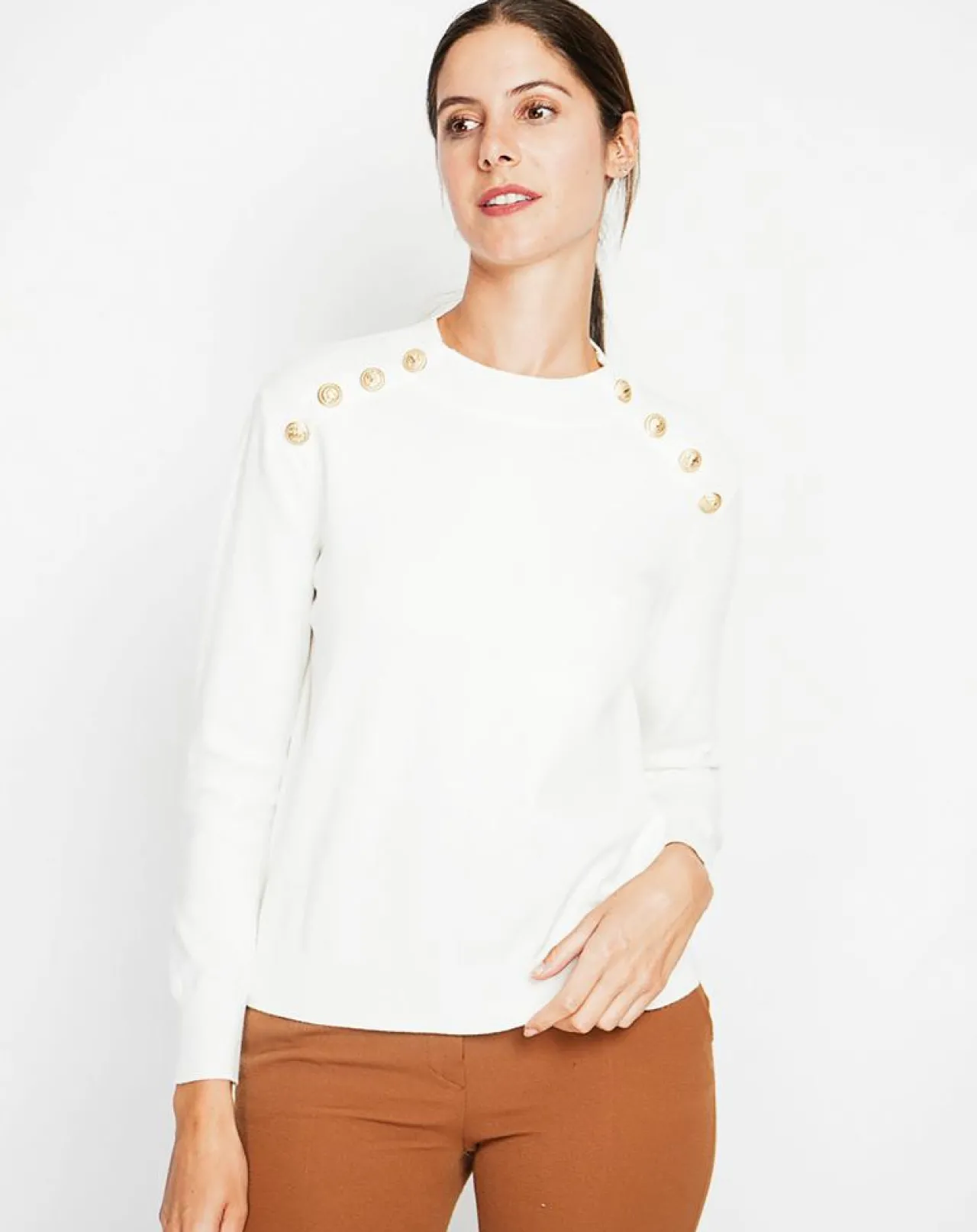 Pull col ras du cou boutonnage fantaisie sur manches raglan