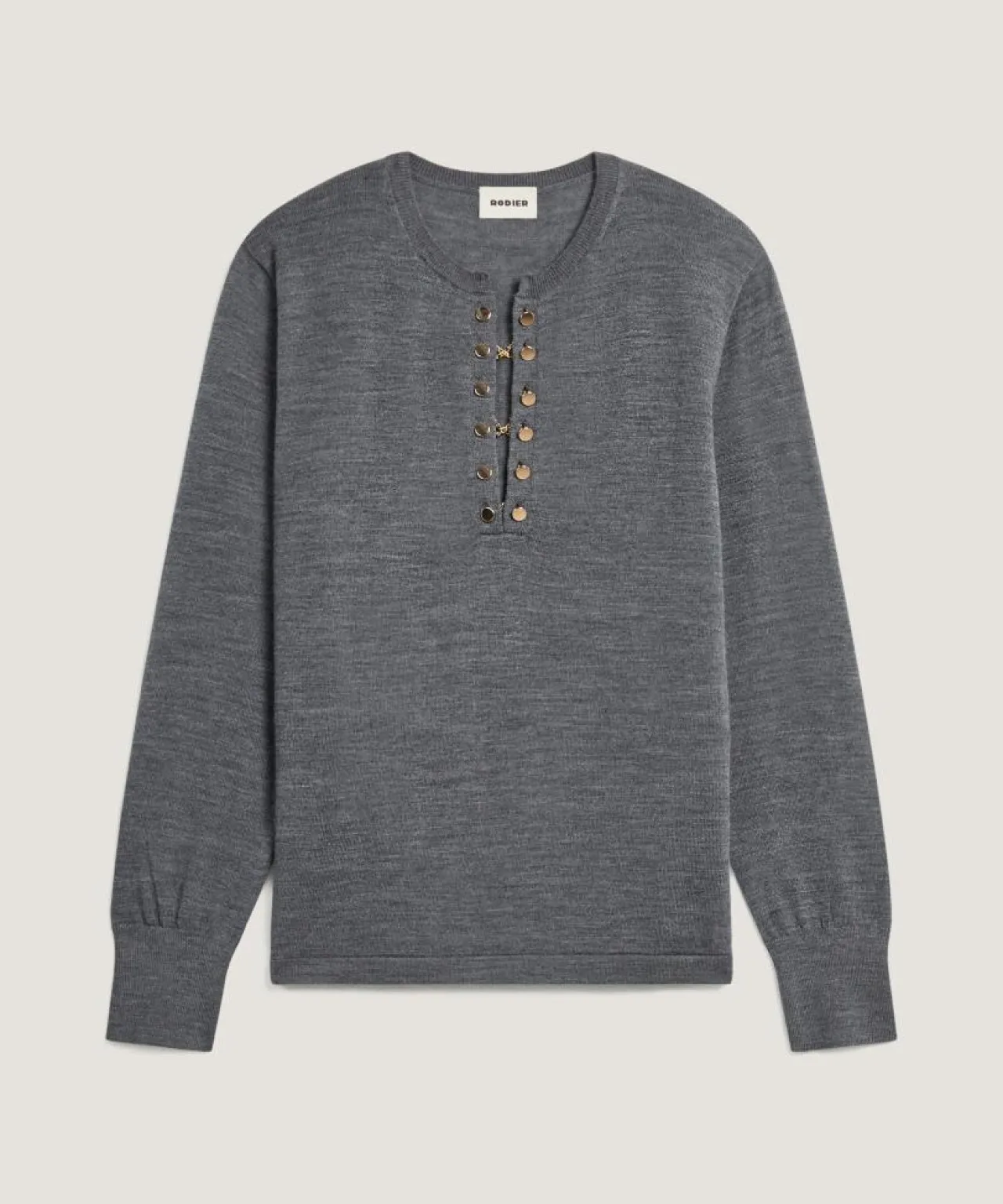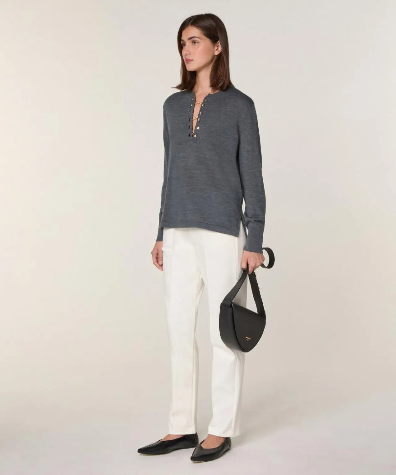 Pull Adija 100% Laine chaine col V gris foncé