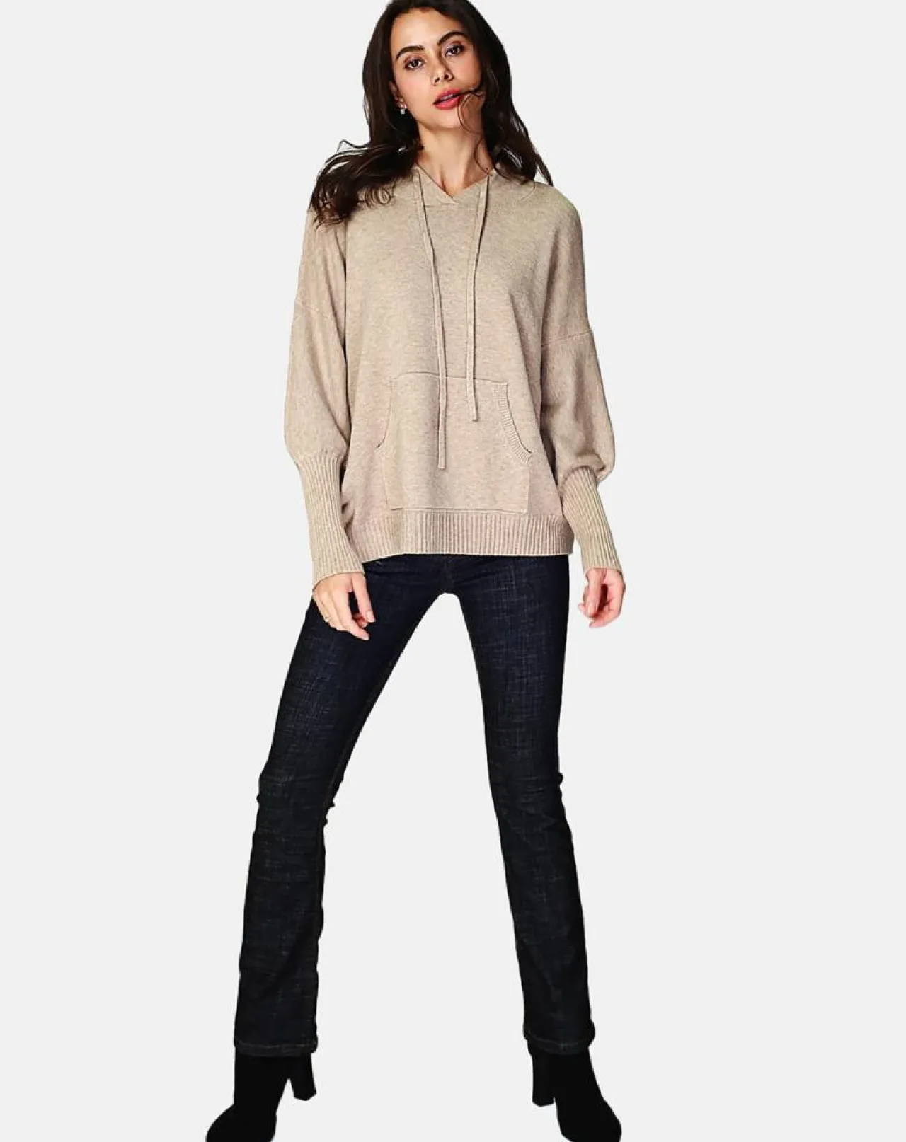 Pull à capuche poche devant en manches longues en 4 fils