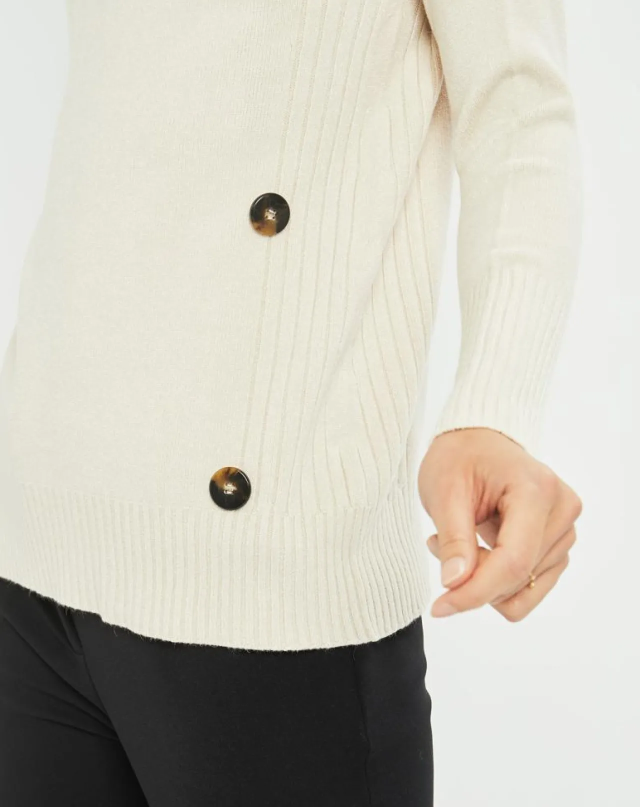 Maille côtelée et boutons décoratifs sur les côtés