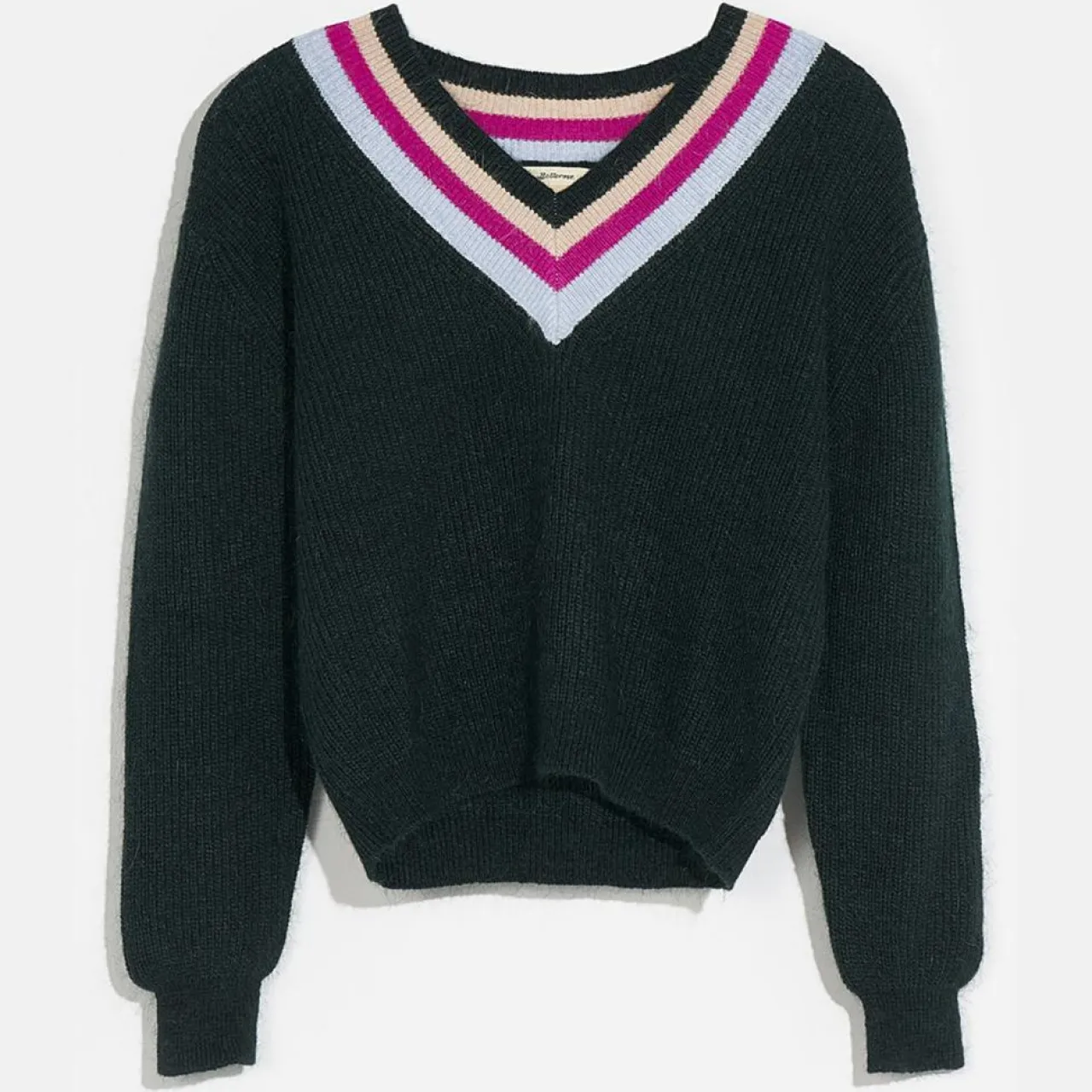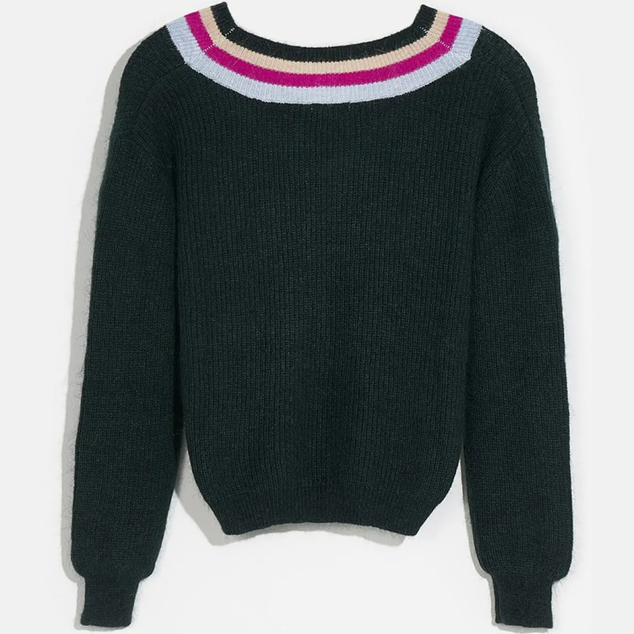 La coupe, vous la connaissez : un col en V, des épaules ajustées et des bords côtelés