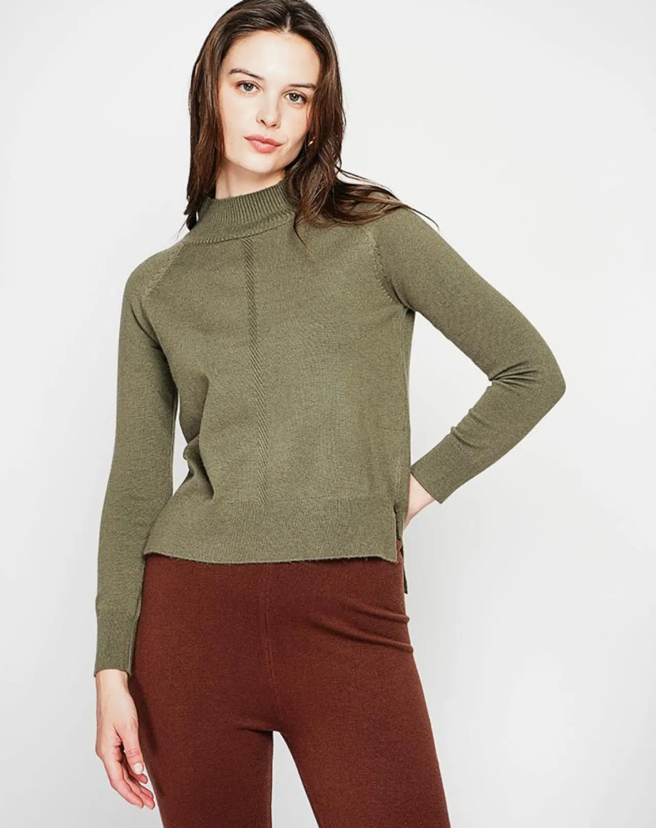 Pull col montant tricot fantaisie devant coupe oversize à manches longues