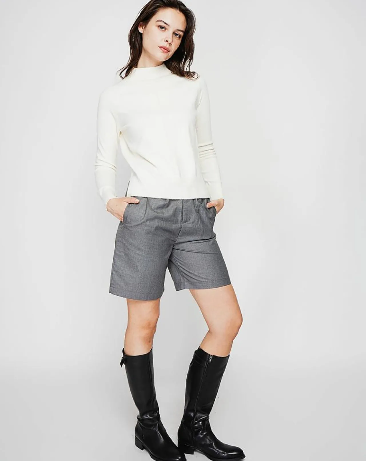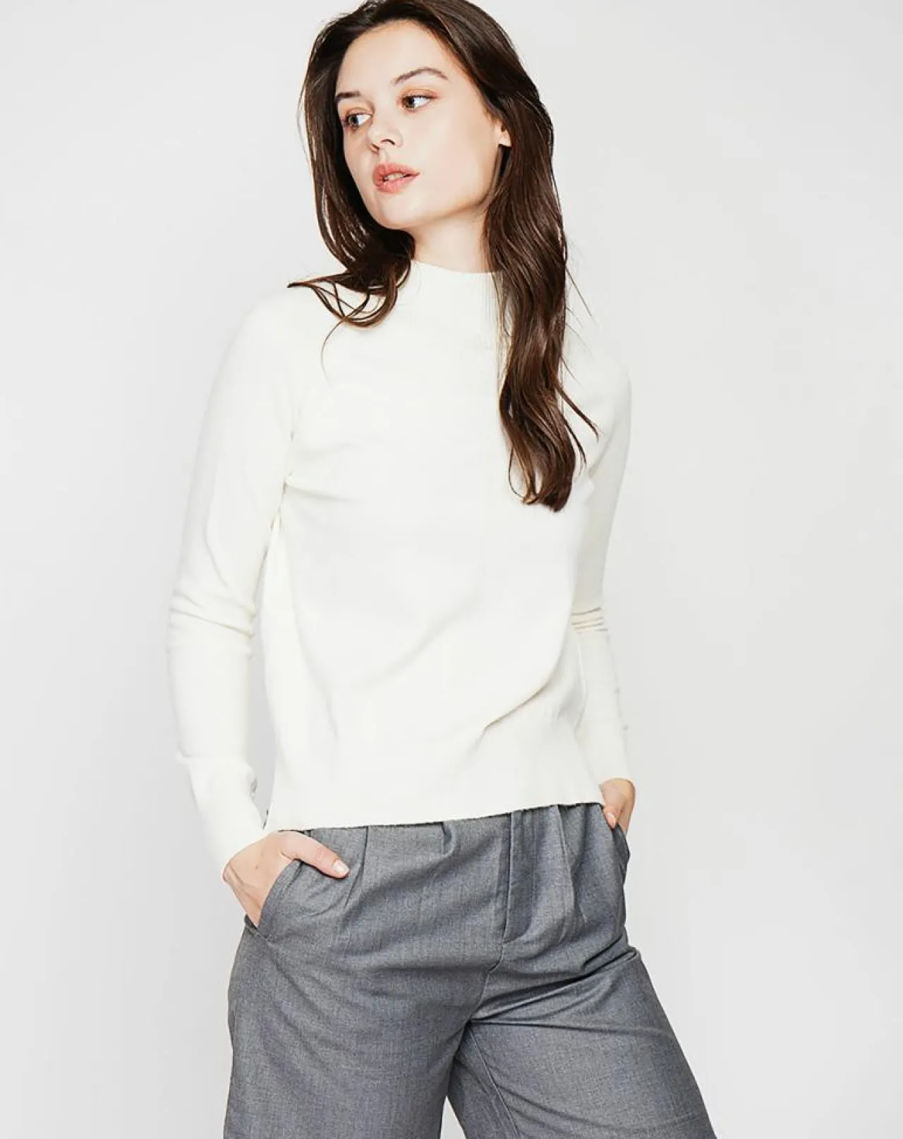 Pull col montant tricot fantaisie devant coupe oversize à manches longues
