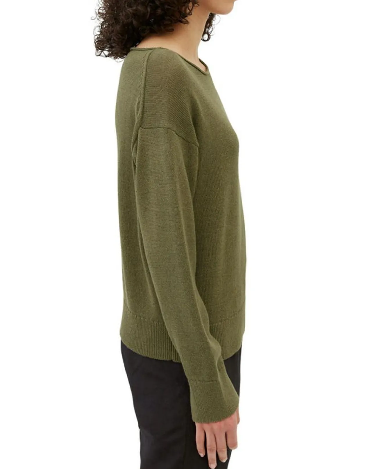 Ce modèle a une encolure bateau large et décontractée, des épaules tombantes et des bordures côtelées au bas des manches et à la base.