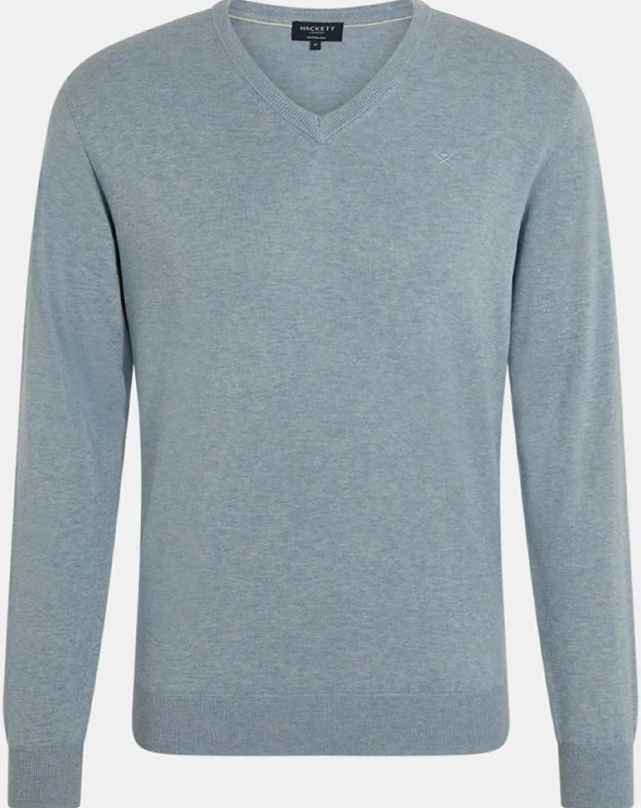 PullCe pull droit Hackett London en coton et soie est muni d’un col V, de manches longues, du logo brodé sur le côté gauche de la poitrine et de finitions côtelées