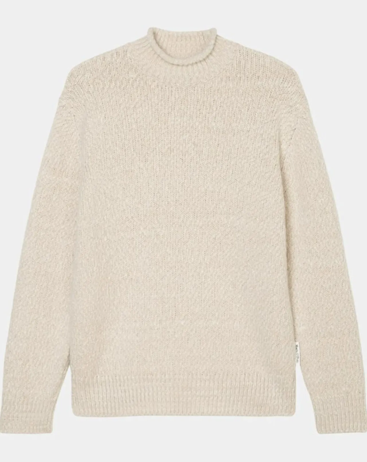 Son col montant côtelé présente un bord roulotté : ce pull-over en maille de qualité supérieure à la texture flammée décontractée est confectionné dans un mélange de coton doux à haute teneur en laine vierge douce et laine d’alpaga douillette.