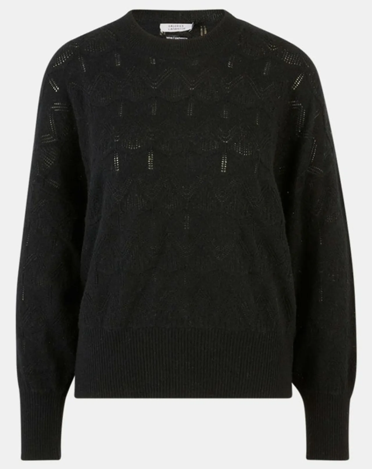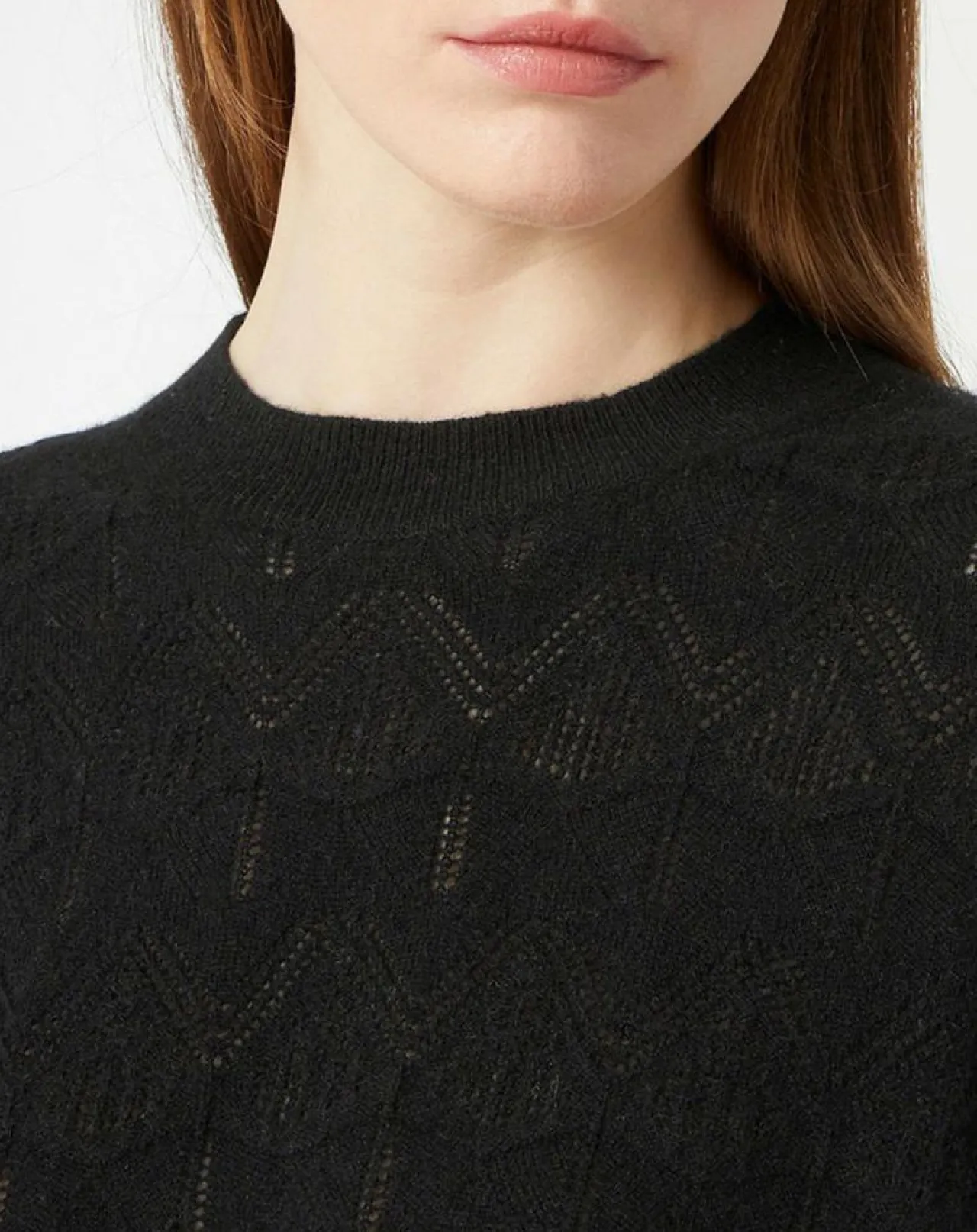 Ce pull court ample Galeries Lafayette en laine et cachemire à motif ajouré, est muni d’un col rond, de manches longues et de finitions côtelées.