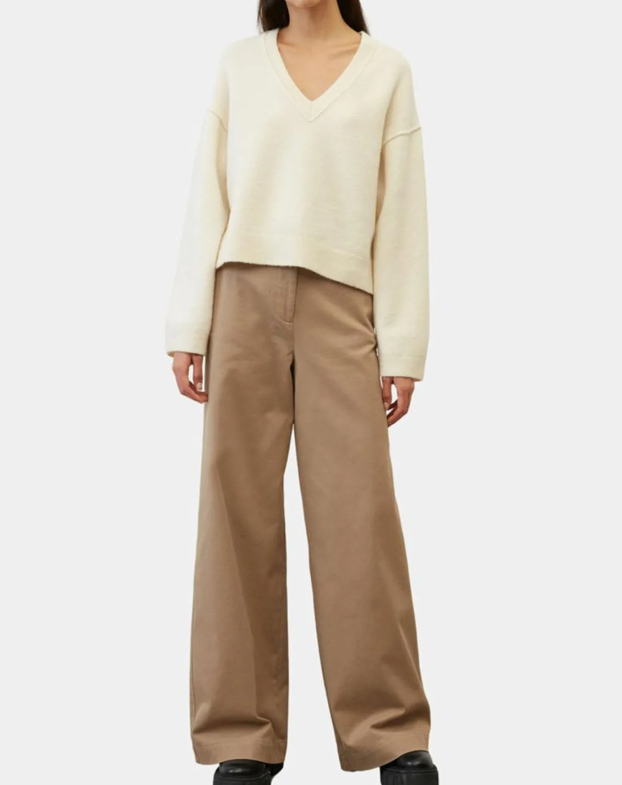 Cette pièce en mailles unicolore est en laine vierge mélangée haut de gamme élégante, qualité brossée douce avec teneur en élasthanne.