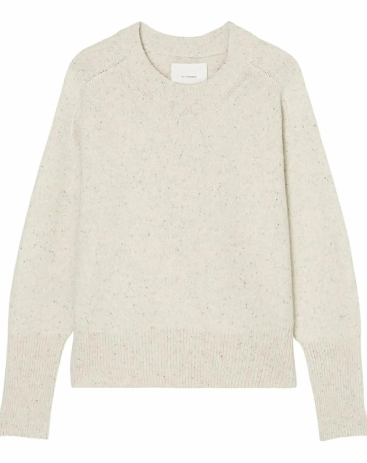Ce modèle doux est doté d’une large encolure ronde côtelée, d’épaules marteau tombantes marquées, de manches décontractées et de longues extrémités côtelées sur tous les bords de l’ourlet.