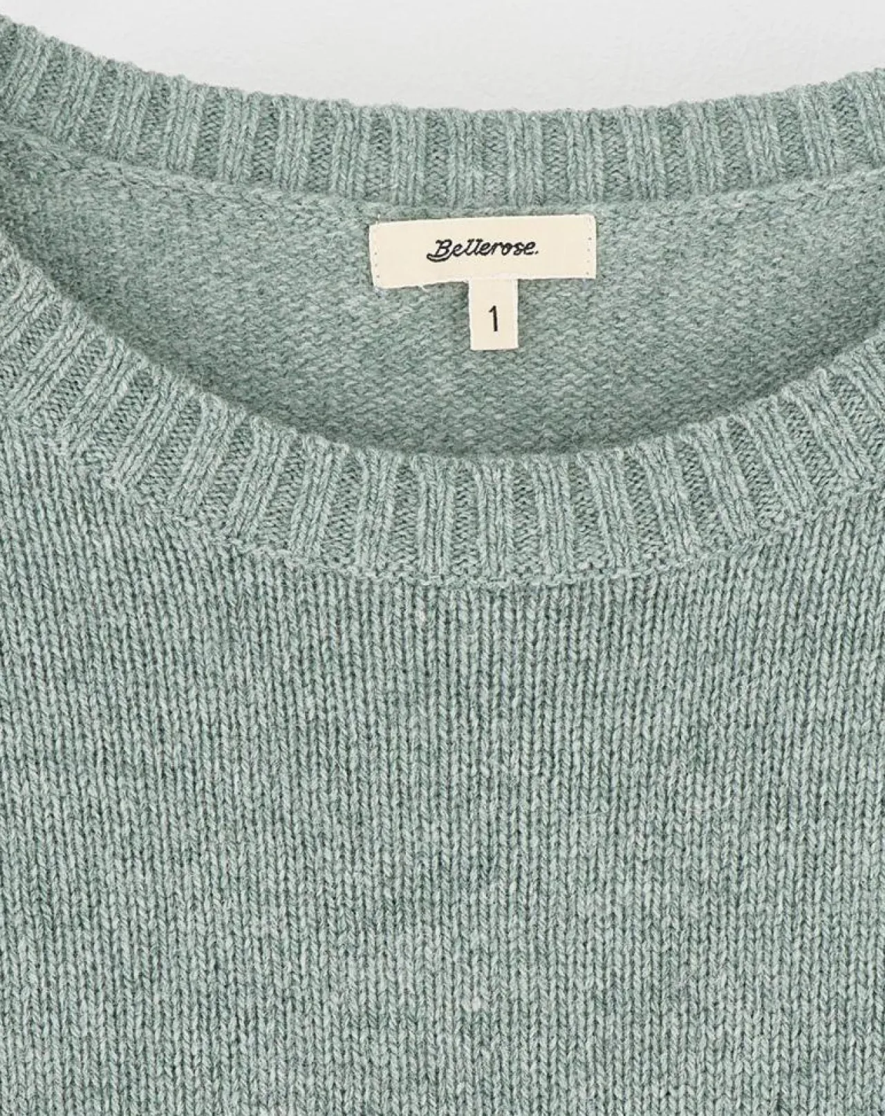 Pull bleu-gris forme ajustée, col rond et manches courtes