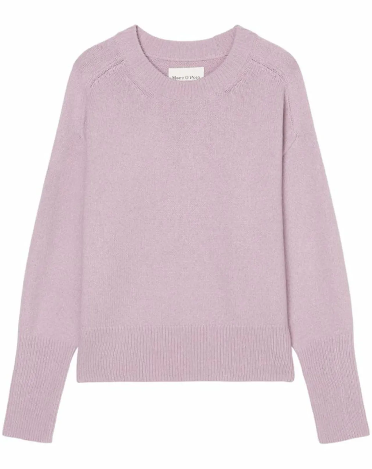 Ce modèle doux est doté d’une large encolure ronde côtelée, d’épaules marteau tombantes marquées, de manches décontractées et de longues extrémités côtelées sur tous les bords de l’ourlet.