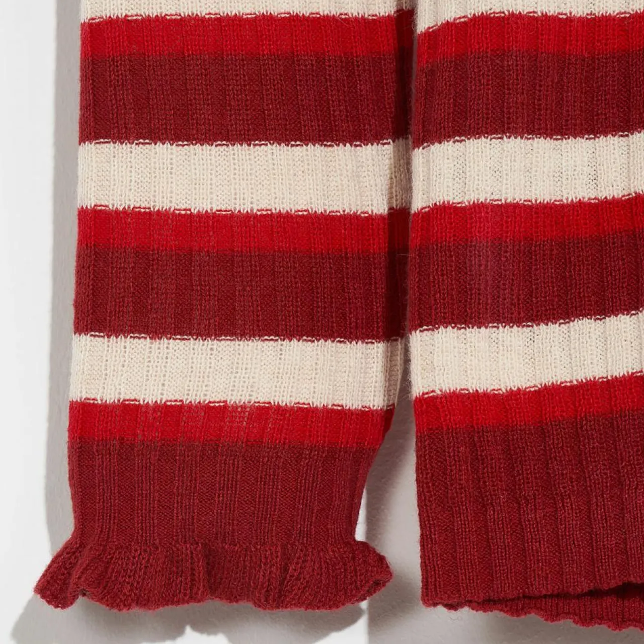 Pourquoi se contenter d’un basique quand on peut avoir Gouly ? Une coupe slim et côtelée qui flatte la silhouette, un col roulé pour un look toujours chic, des rayures bretonnes aux couleurs saisonnières et des manches à volants pour saupoudrer le tout d’un zeste de féminité : le pull parfait ! Tricoté en coton et laine mélangés, il convient à la mi-saison, mais aussi aux grands froids d’hiver comme petite couche en plus