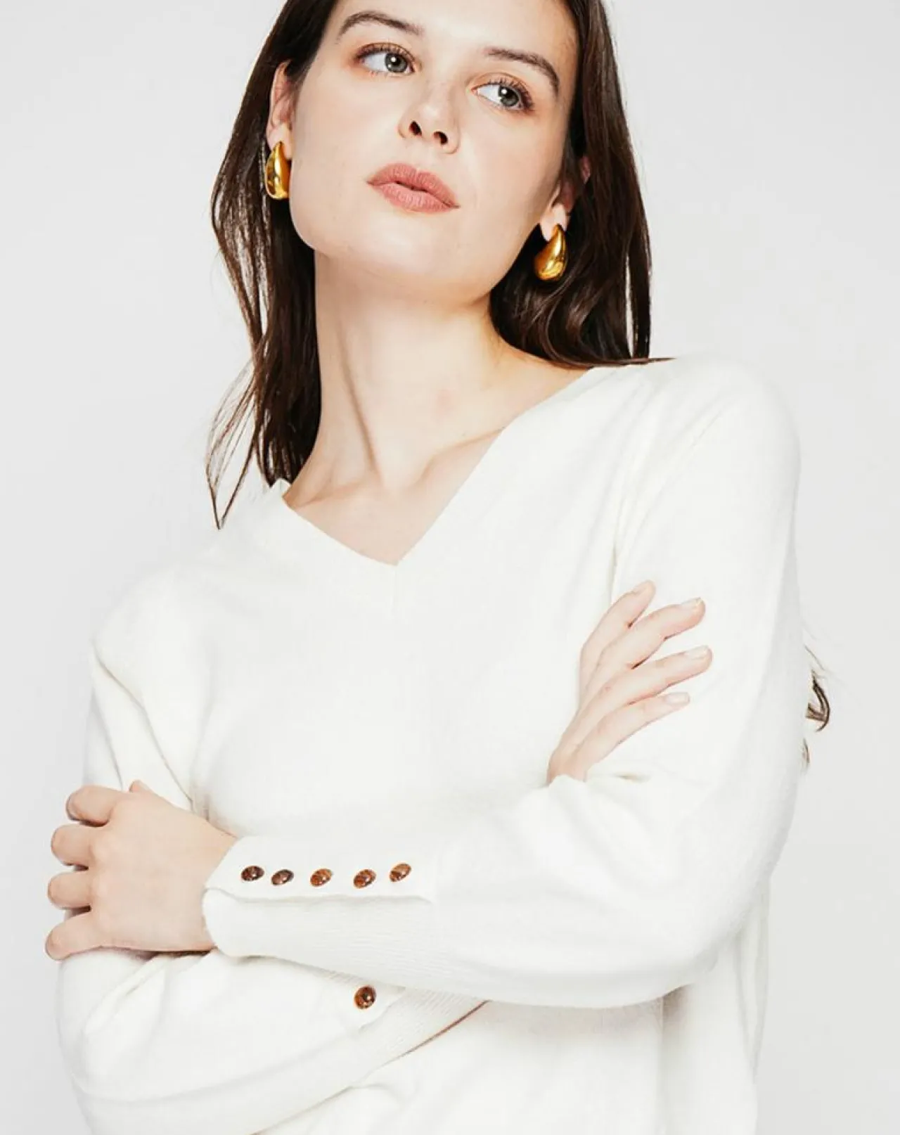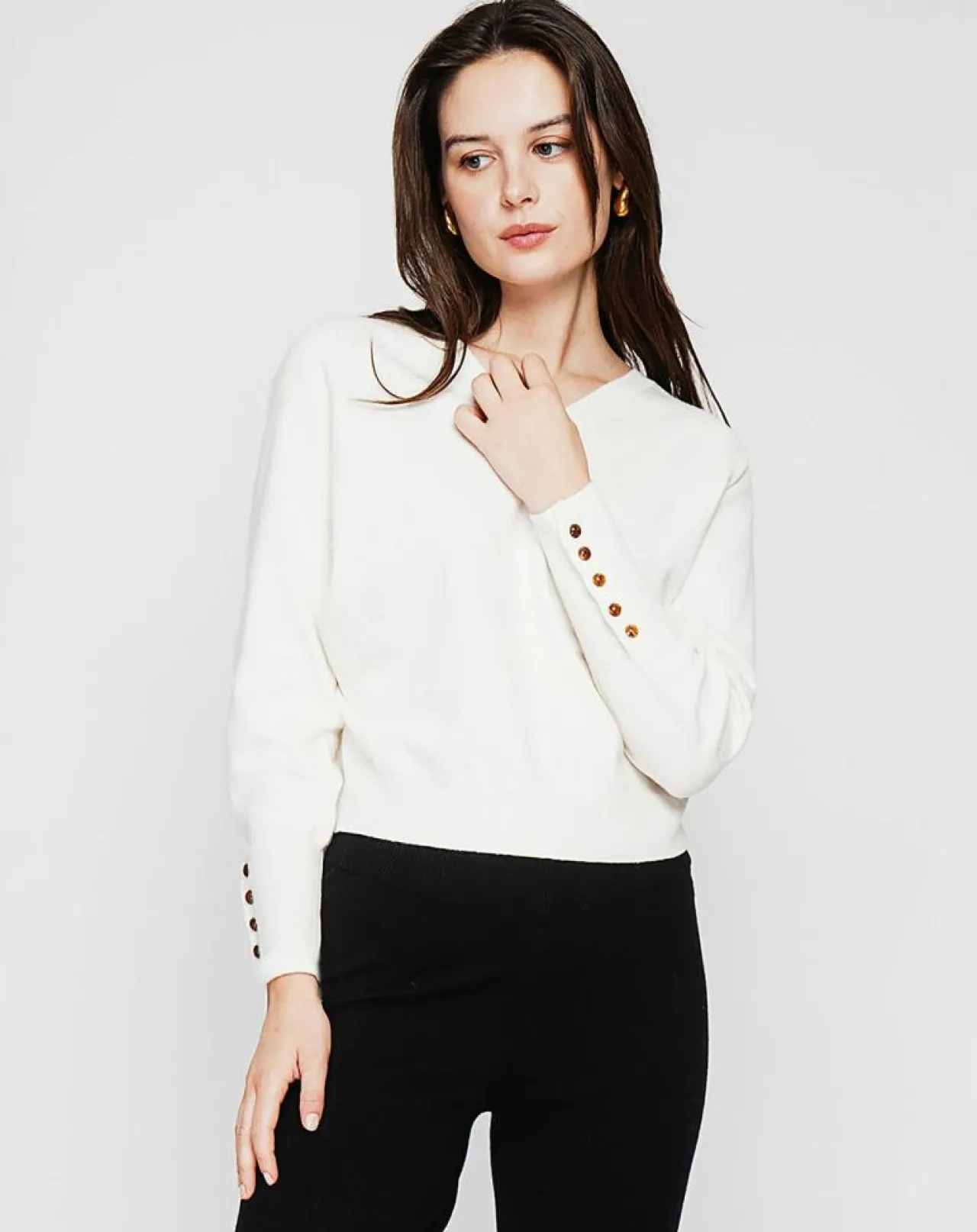 Pull col v coupe oversize patte boutonnage en bas de manches longues